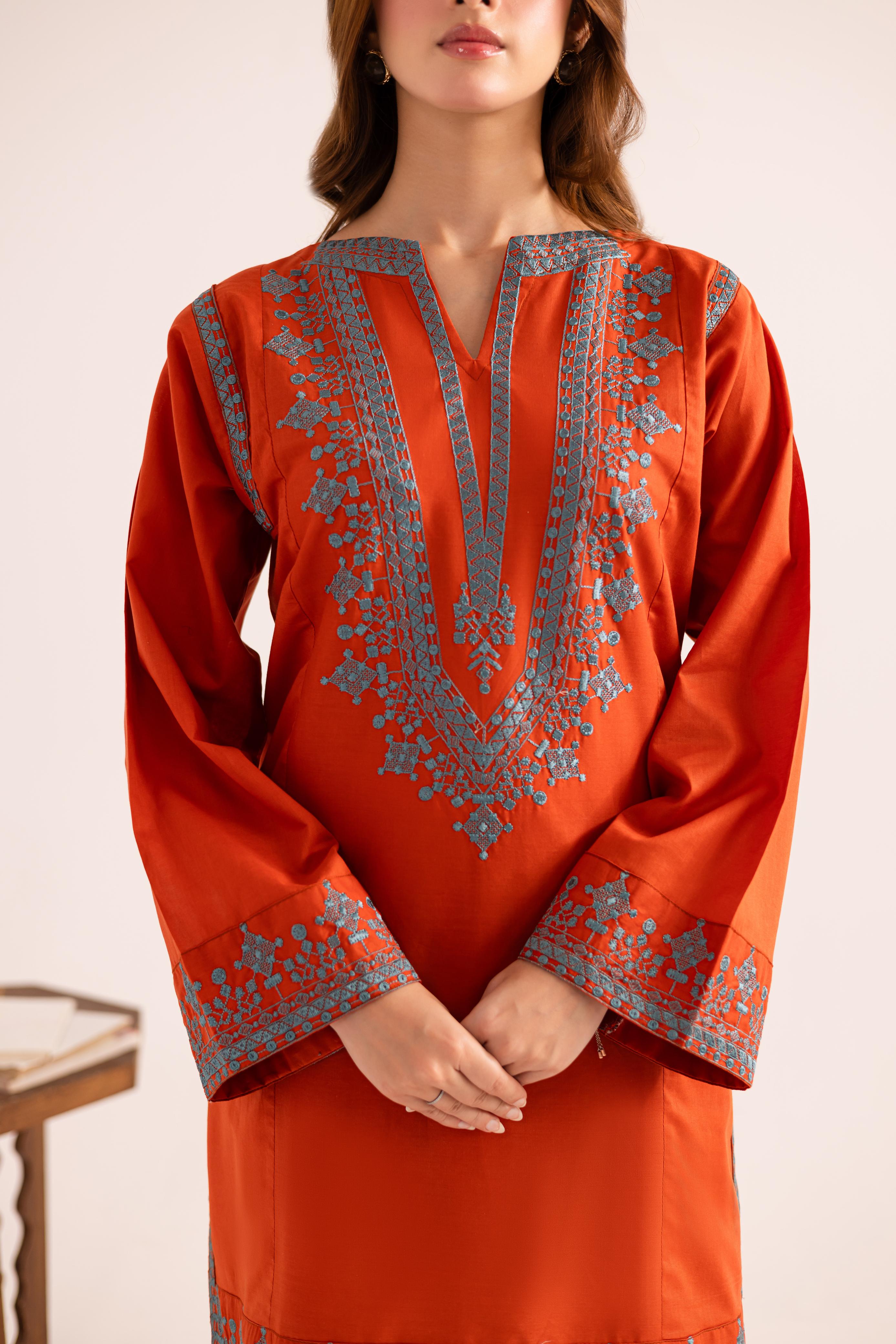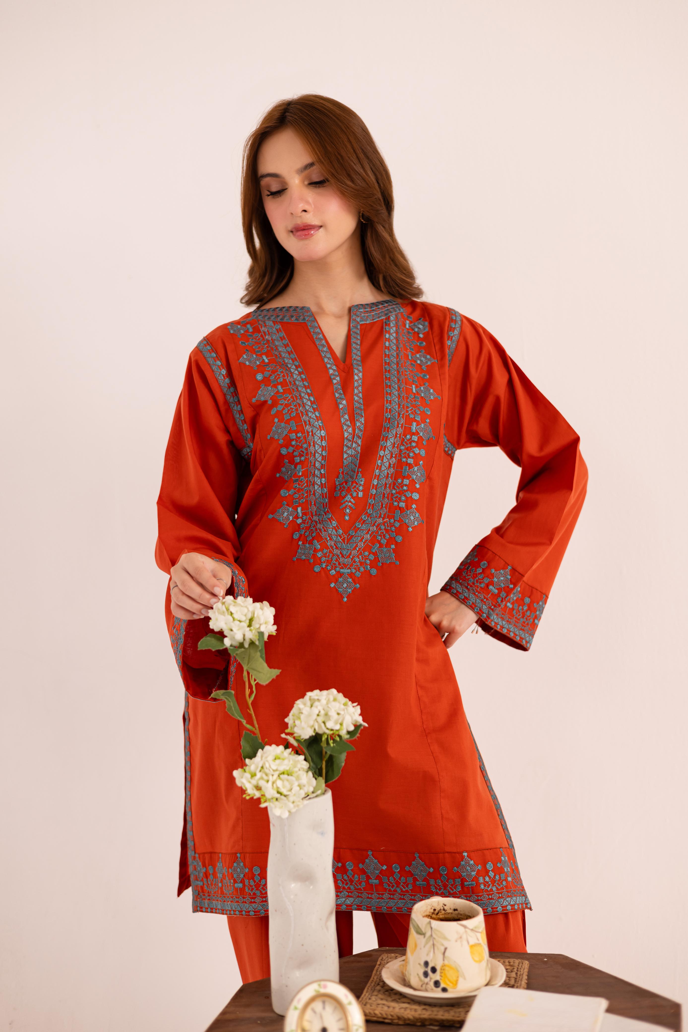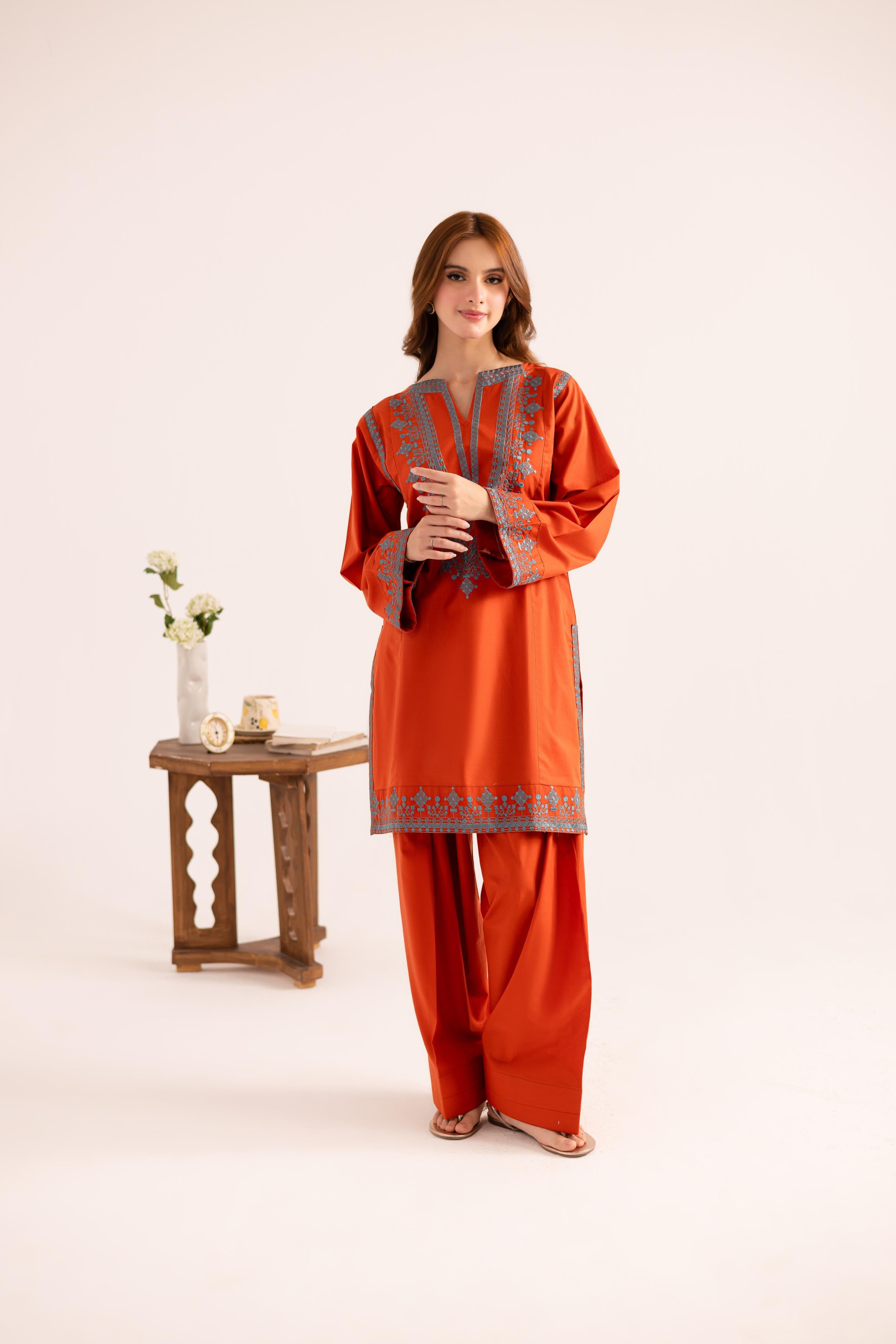 Description: Embroidered Shirt and Farshi Shalwar for Summers.