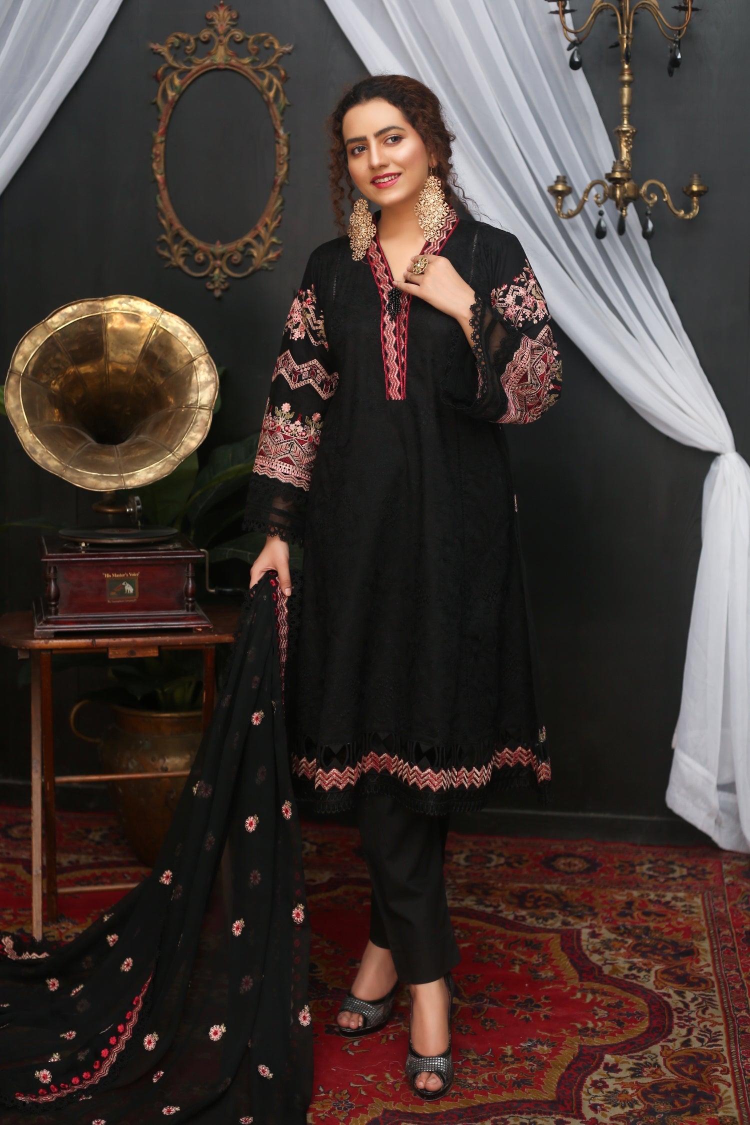 - Embroidered Bamber Chiffon Dupatta