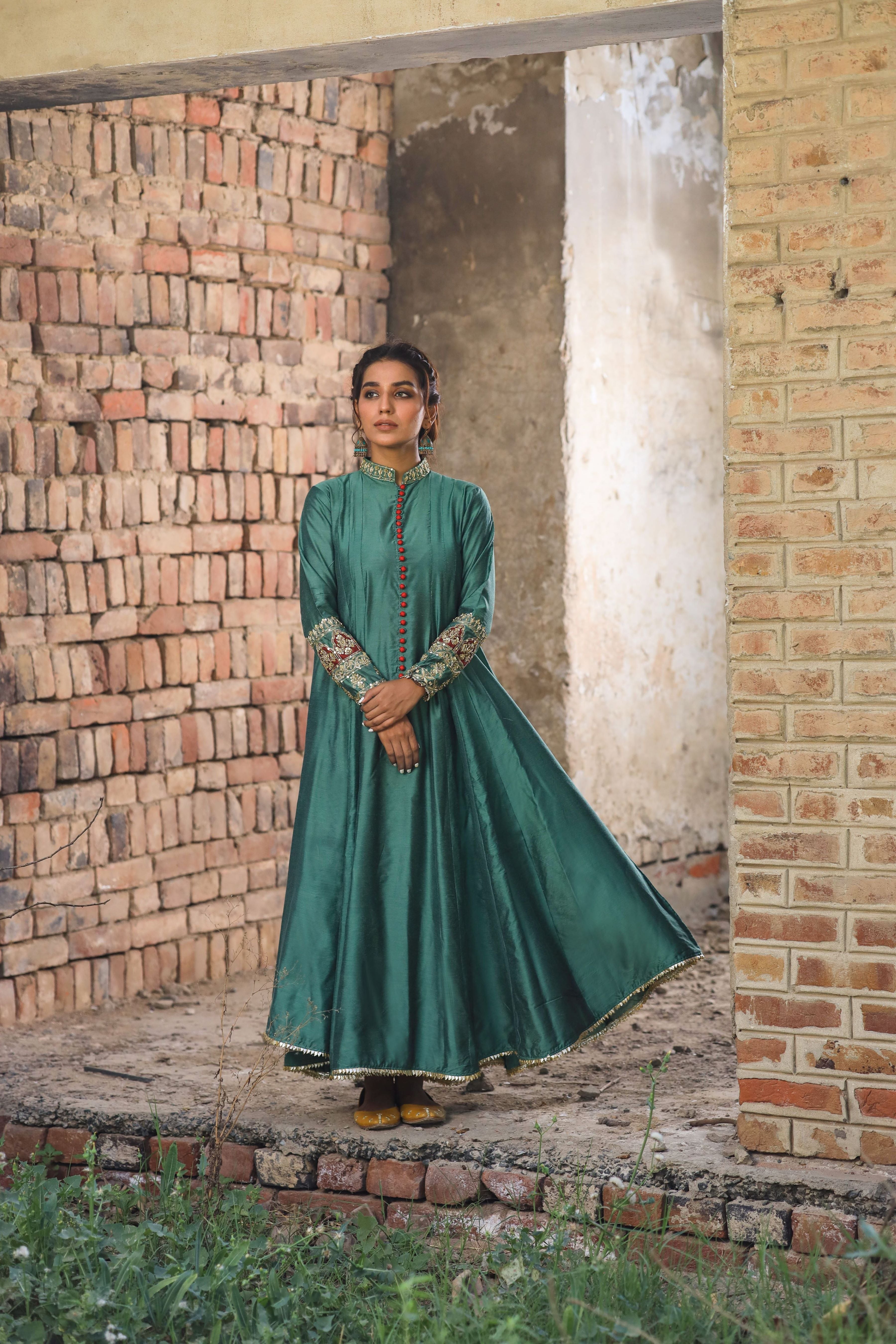 Description: Fabric (Organza & Soft Katan Silk) Zordozi Work on Sleeves & Neck. Embroidered patch on dupatta.