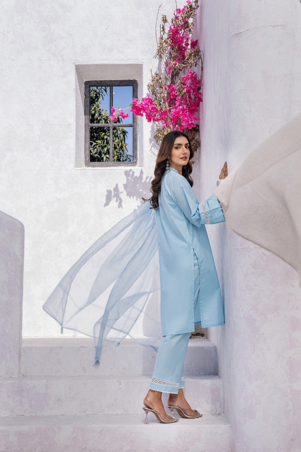 Presenting the mesmerizing "AZURE" look, a representation of the azure sky on a clear summer day. Stitched with a sense of serenity and sophistication, this dress epitomizes the spirit of empowerment, inspiring women to embrace their uniqueness and express themselves with confidence and grace.