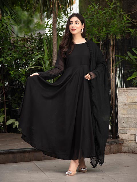 Introducing the chic Black Dress Shalwar Maxi and Dupatta - a modern and stylish ensemble designed specifically for the summer season. With its sleek black color, contemporary design, and lightweight fabric, this outfit is the epitome of fashion and comfort. Perfect for the modern woman who wants to stay cool and fashionable during those hot summer days.