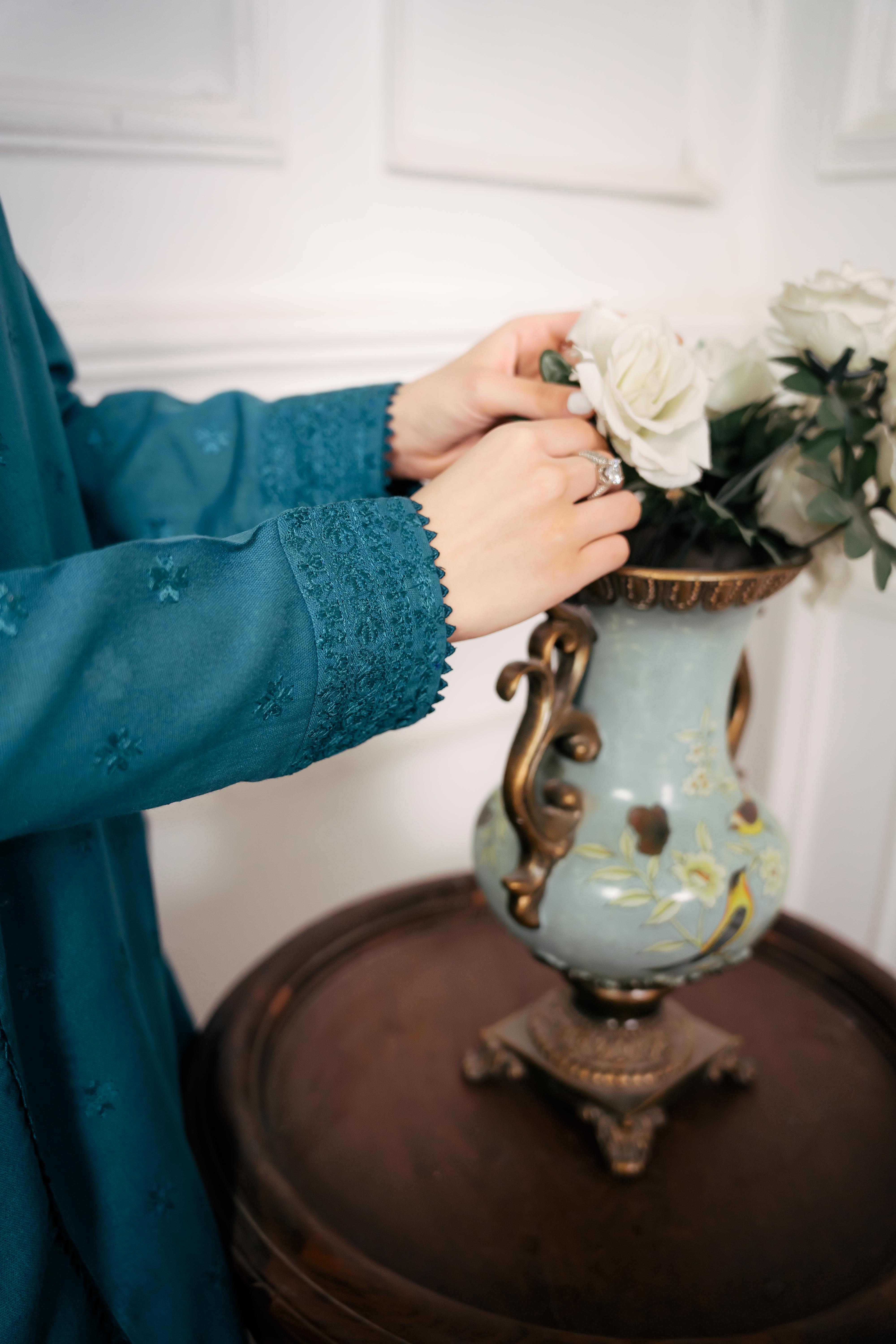 Introducing a supremely comfortable ensemble ideal for those days when you crave freedom and ease – a breezy, loose-fitting kurta adorned with exquisite details paired with a stylish shalwar. The roomy shalwar, in my opinion, effortlessly blends tradition with a contemporary twist.