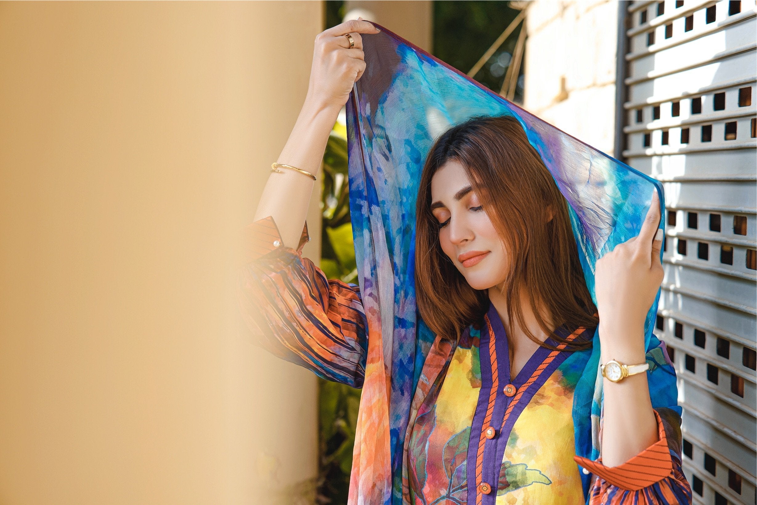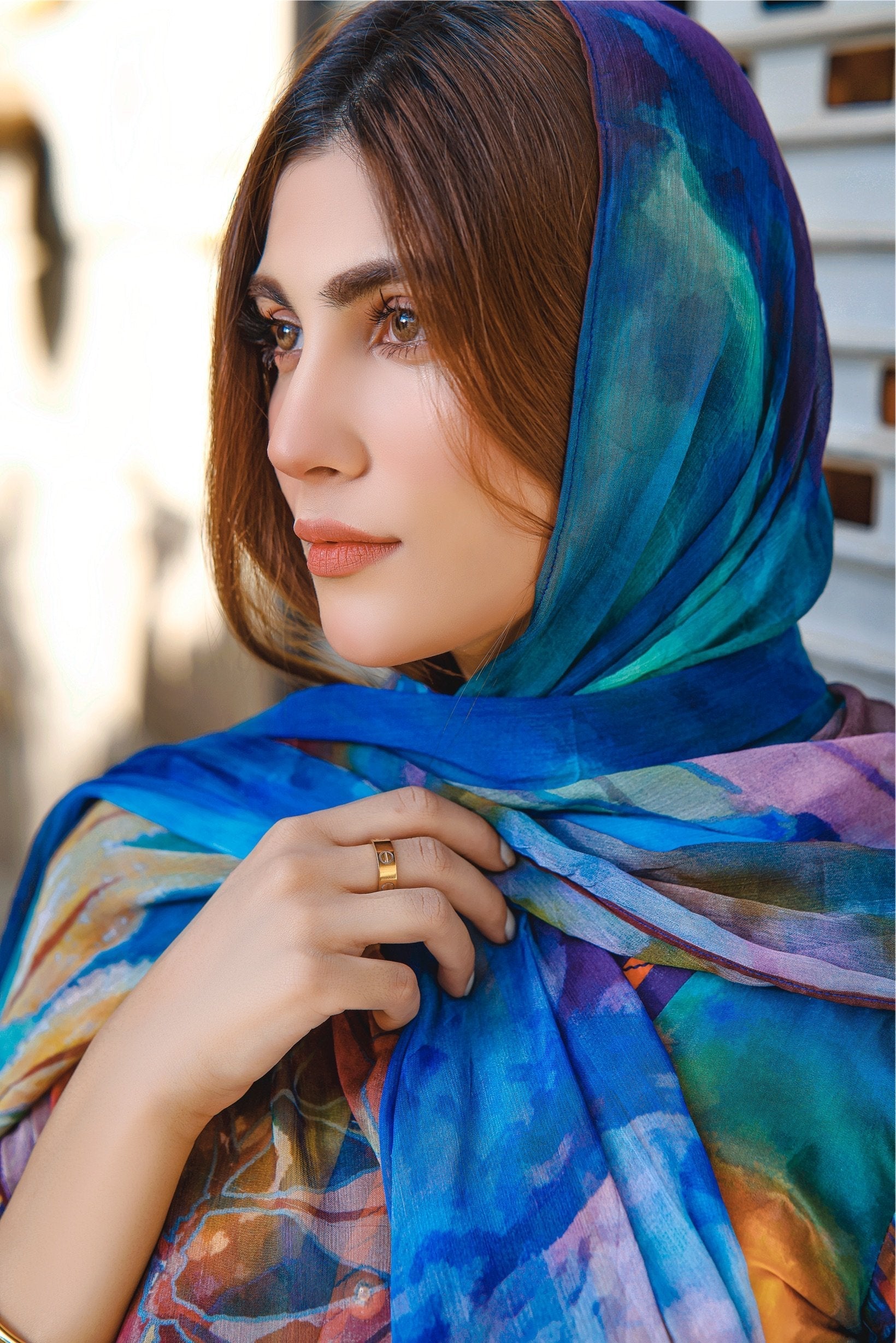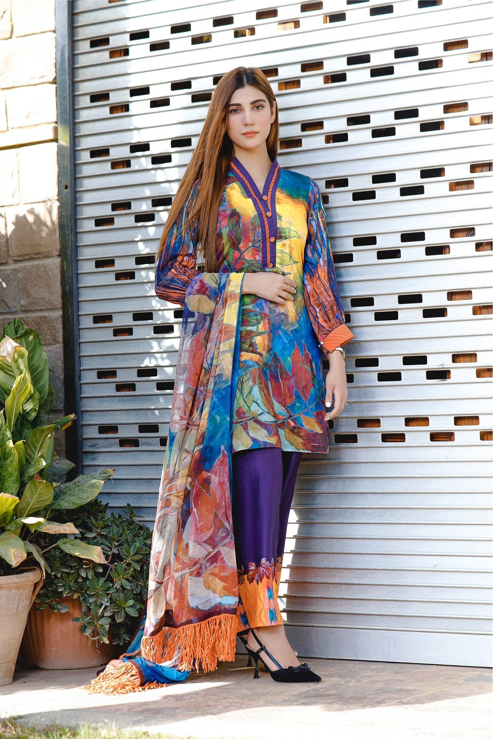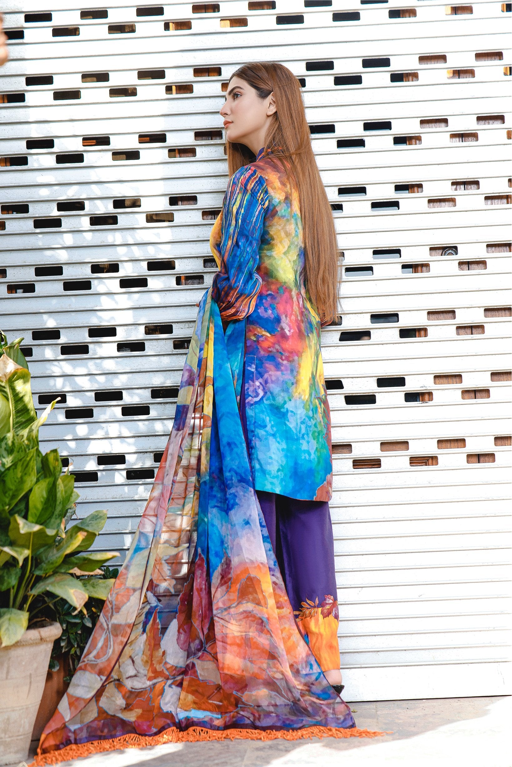 Experience Exquisitely (Unstitched) Digital Printed 3pc Lawn Dress With Digital Printed Chiffon Dupatta & Digital Printed Trouser.