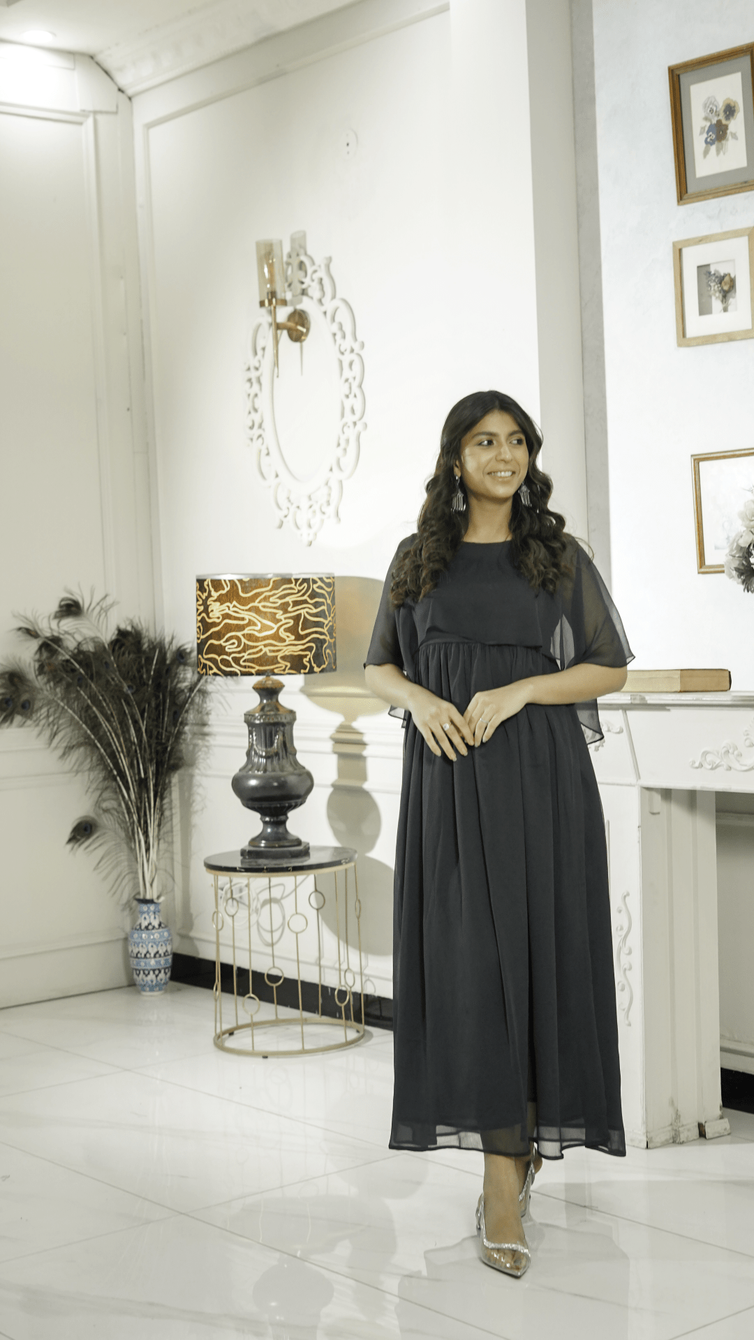 Upgrade your wardrobe with this beautifully designed Grey midi dress that exudes elegance and versatility. This stunning piece features a flared silhouette, giving it a modern and flattering shape. The sleeveless design and soft chiffon fabric offer both comfort and grace, making it perfect for any occasion.