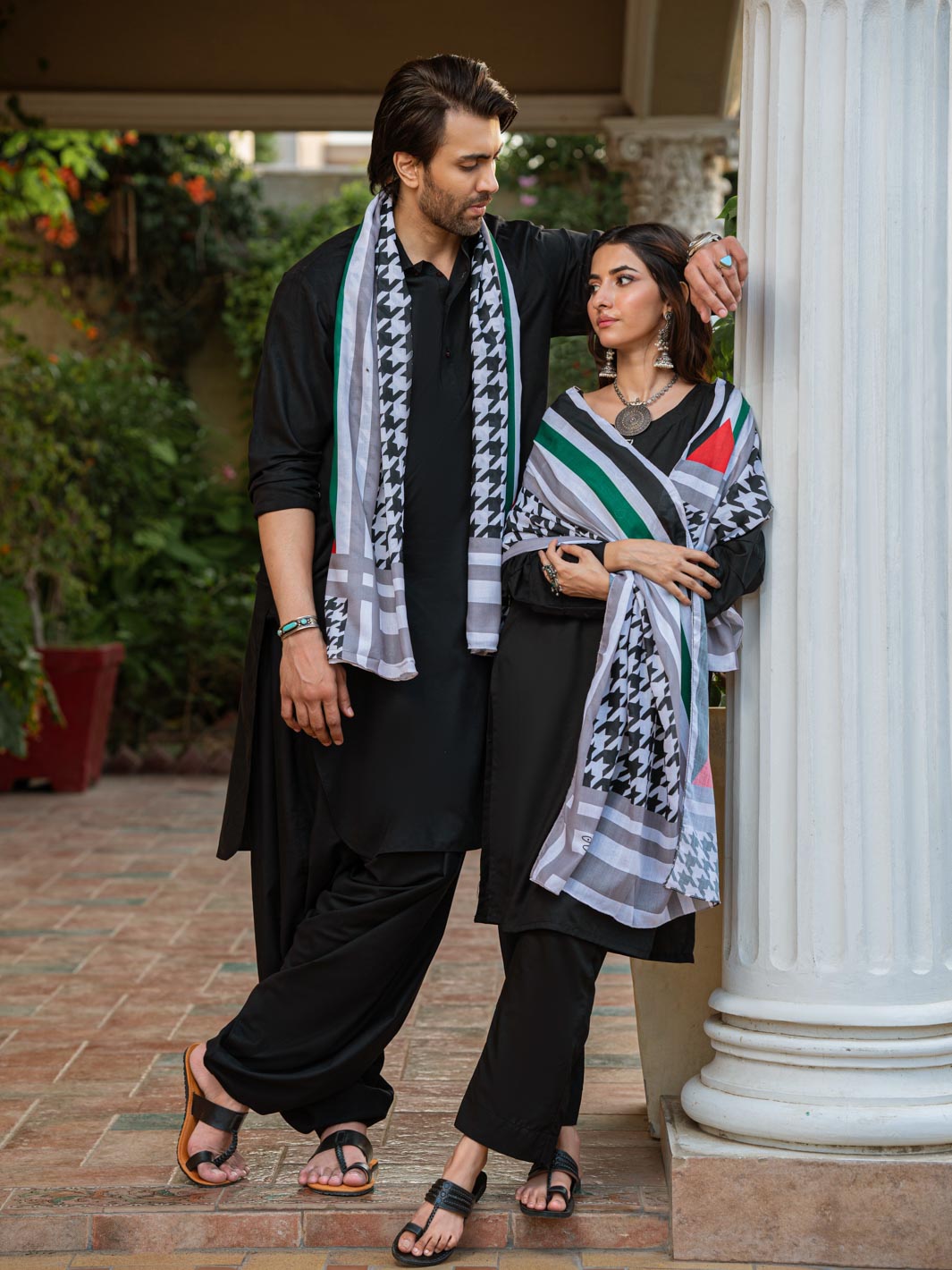 A very beautiful & Stylish Stole crafted from high quality materials. This fabric not only ensures durability, but making it an ideal choice for those seeking to enhance their wardrobe with a classic yet contemporary aesthetic & the contrasting colors enhances the fabric's versatility.