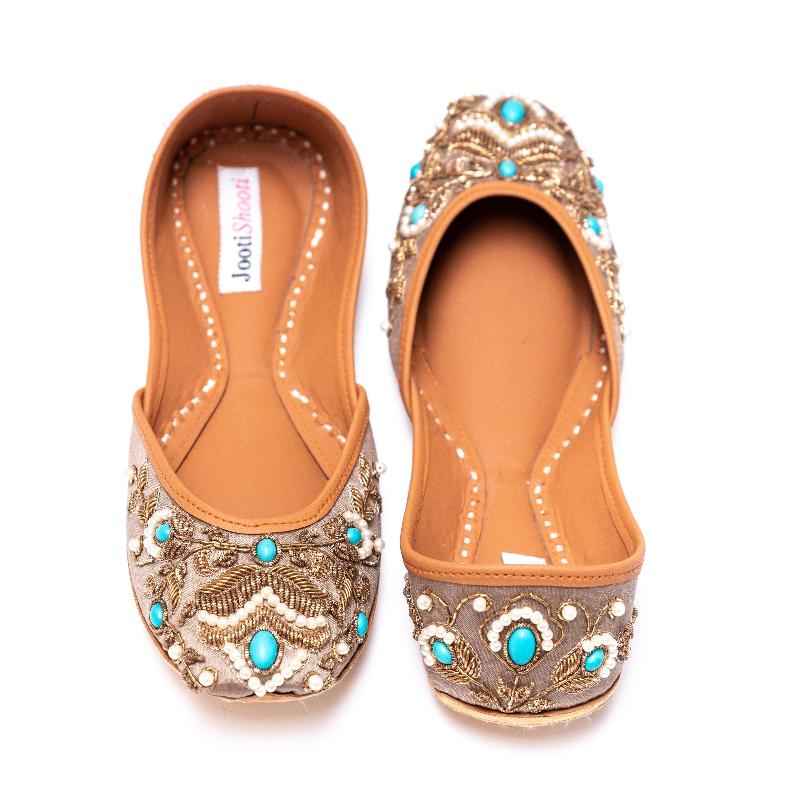 Silk khussa, an epitome of the finest craftsmanship, hand-crafted with dabka, zardozi, pearls and feroza.