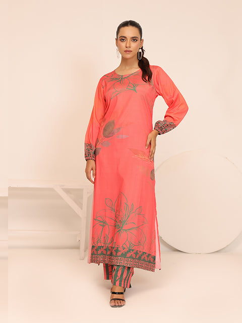 This chic and trendy ensemble is ideal for any fun event. Crafted from premium soft crepe fabric, this orangish and green floral -style ensemble is adorned with abstract prints and vibrant tribal designs...