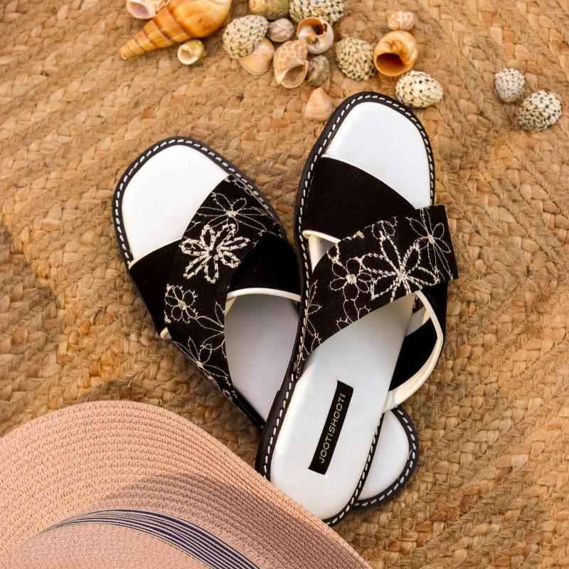 Unleash your inner fashionista with these must-have crossover slides, blending comfort and style seamlessly. From casual Fridays to weekend outings, these black and white floral slides add flair to any ensemble.