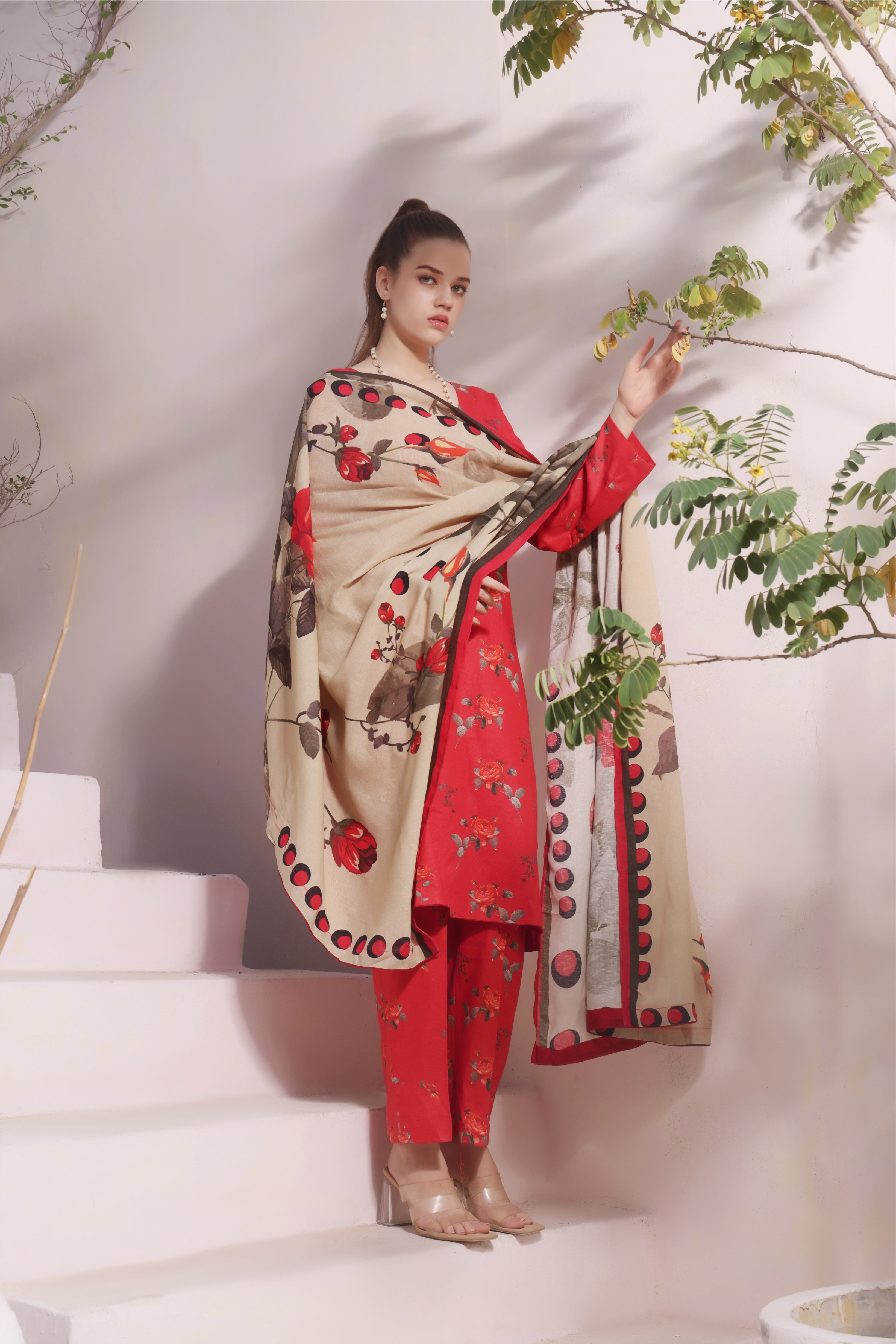 DISCLAIMER: COLORS MIGHT APPEAR SLIGHTLY DIFFERENT DUE TO THE PHOTOGRAPHIC/LIGHTING EQUIPMENT USED. SOME ACCESSORIES/EMBELLISHMENTS USED ARE ONLY FOR SHOOT PURPOSES AND NOT PART OF THE ACTUAL SUIT.
