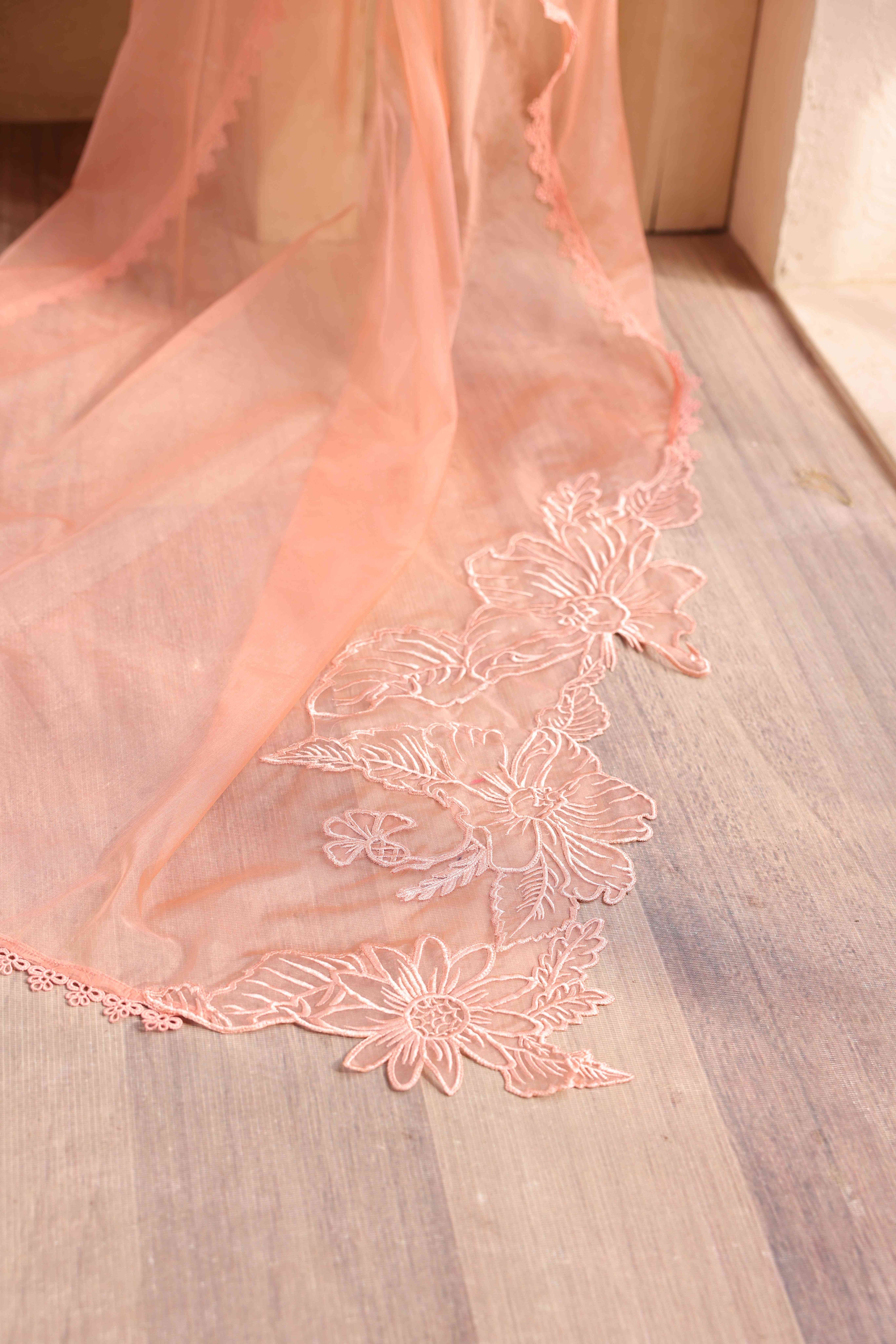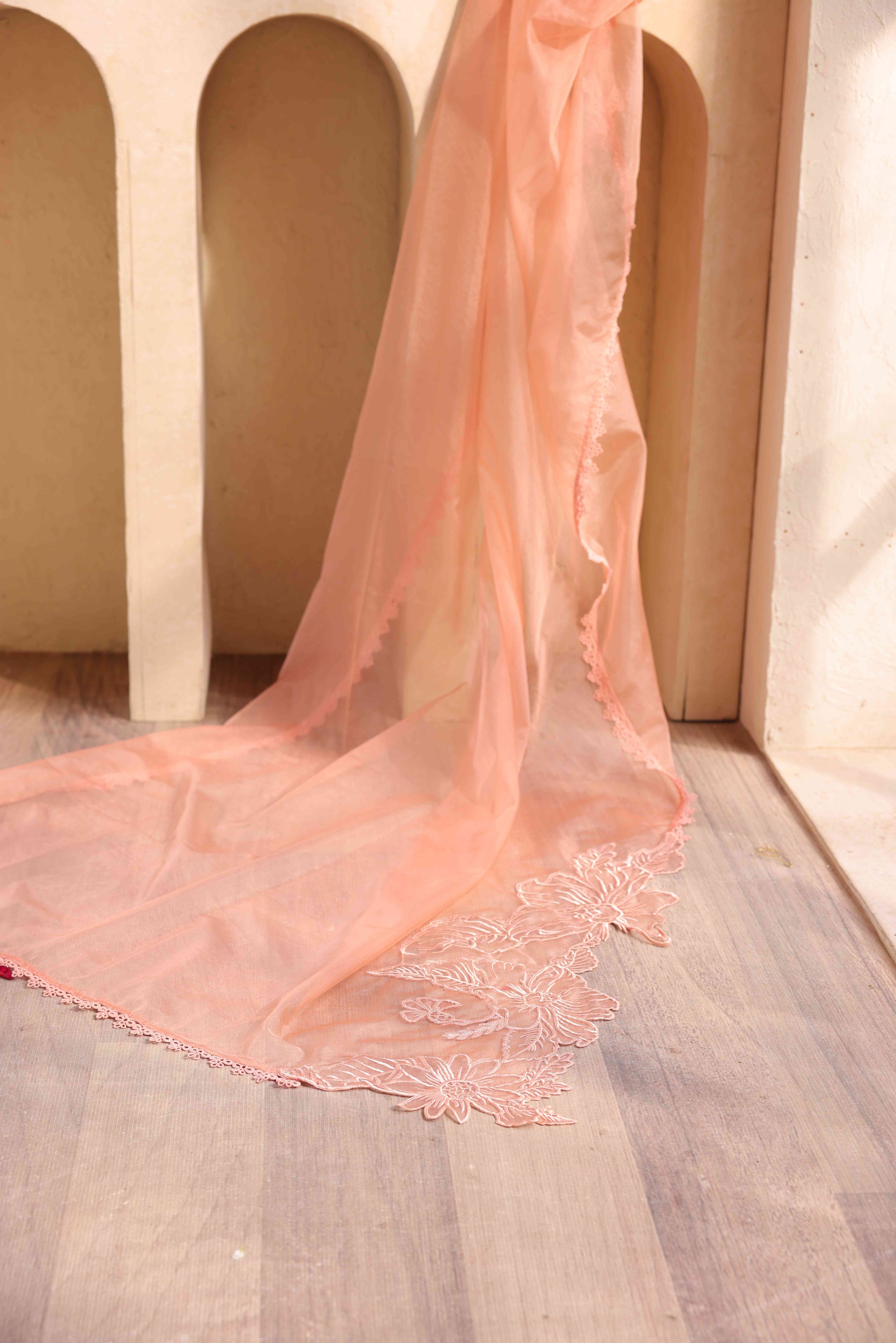 - Pure Organza Embroidered Dupatta with Cutwork Technique and Laces on all Four Sides.