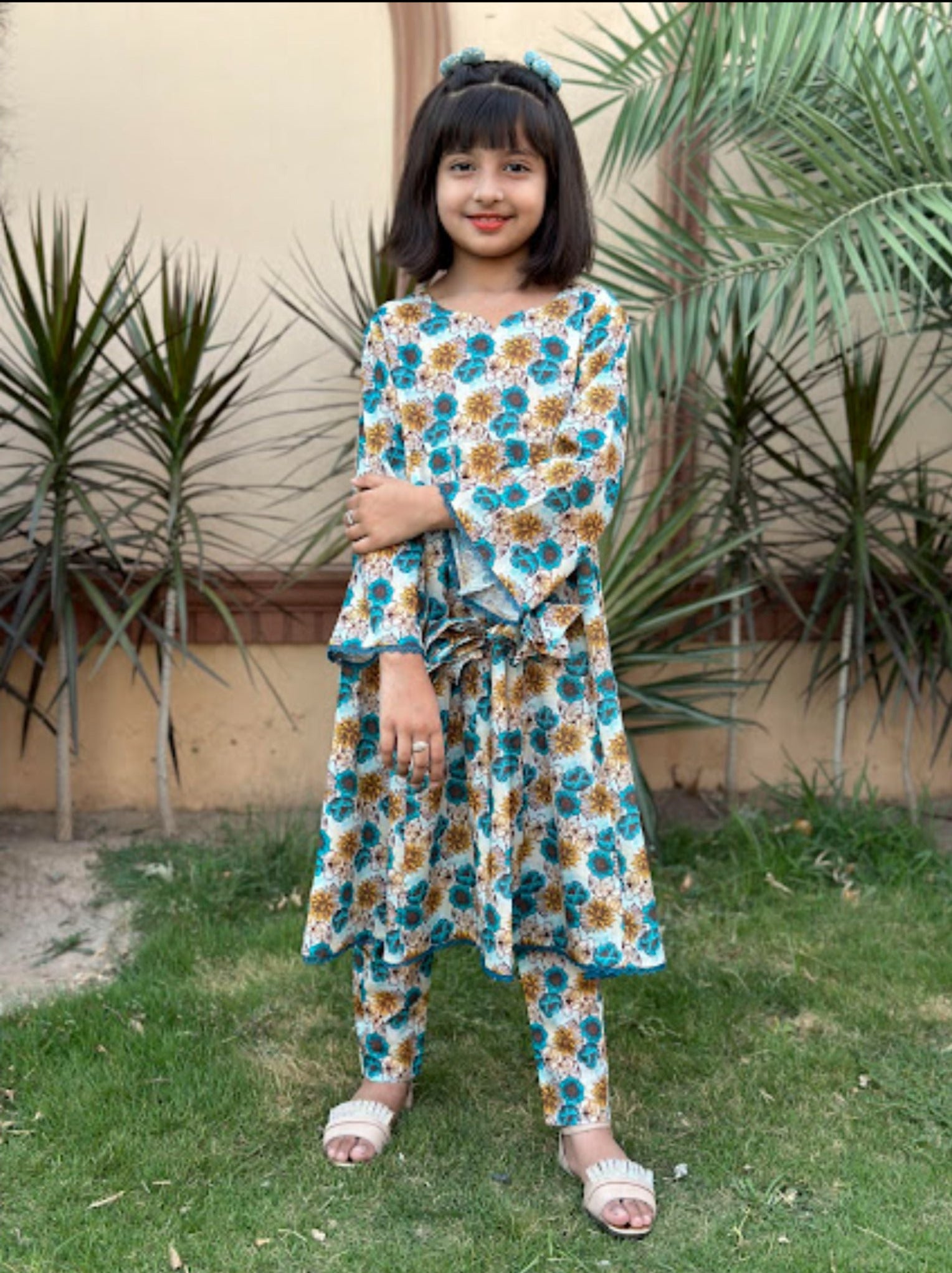 Immerse your little girls in the captivating fragrance of Pakistani culture with our" Mehak Delight " collection. Our floral frocks and trousers, made from luxurious lawn fabric, are adorned with handcrafted details and delicate embellishments, reflecting the charm of a blooming garden in spring.