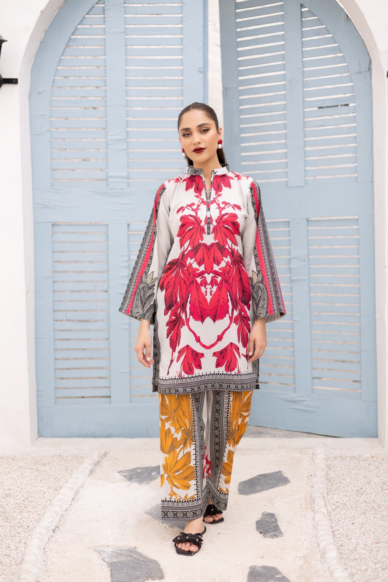 “DINA” colorful blend of two piece coord set, featuring short, straight shirt with a loose trouser. This is a perfect addition to your wardrobe.