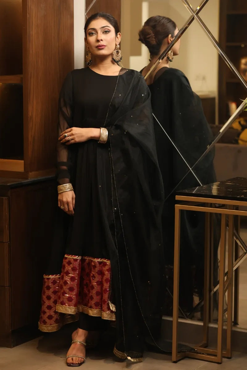 Black Chiffon Pishwas