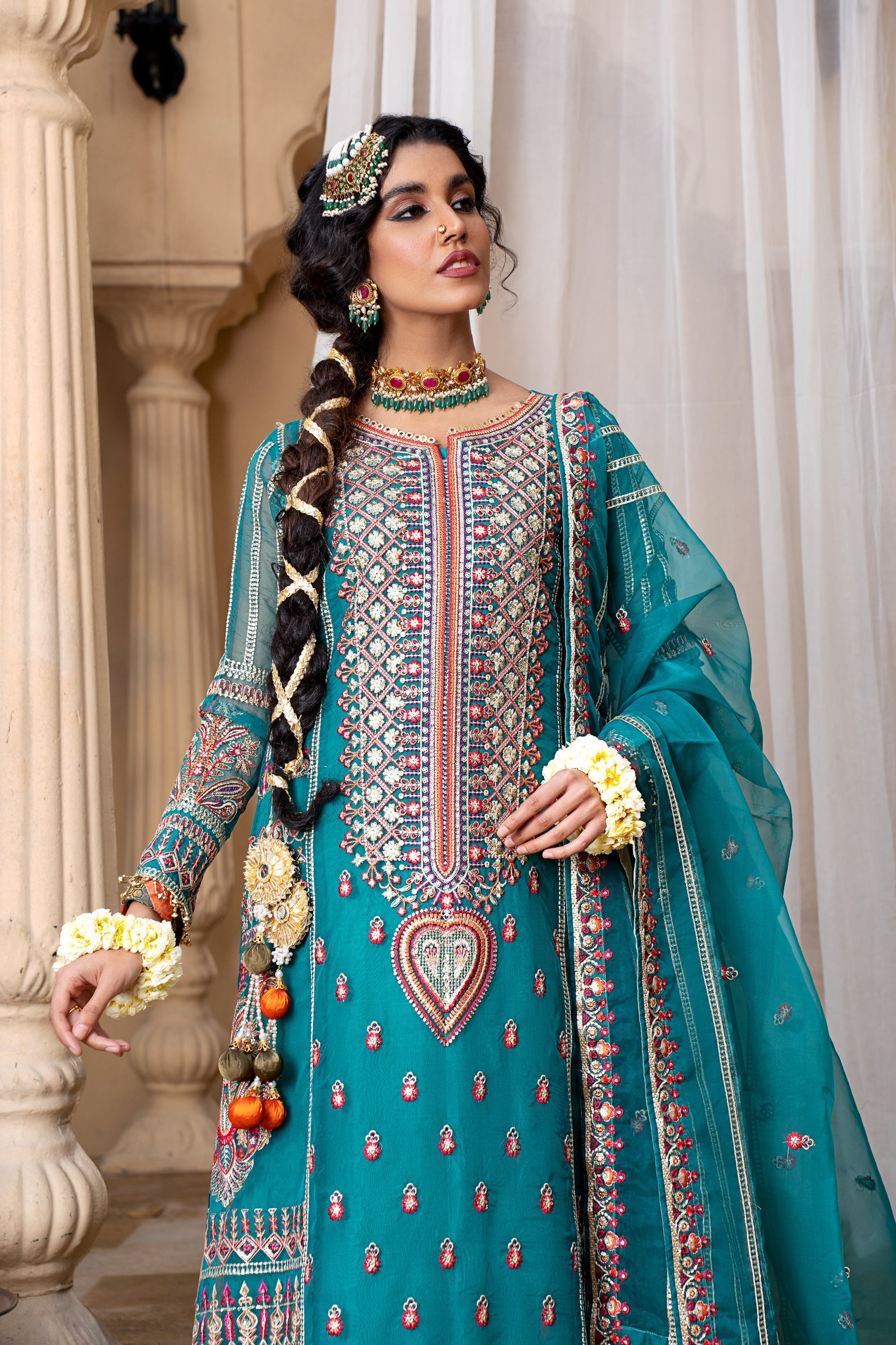 Embroidered Front,Back, Patti patch (Organza) 1.5Yrds Embroidered ,Sleeves Patti patch (Organza) 1.5yrds Embroidered Dupatta (Organza) 2.70Yrds
