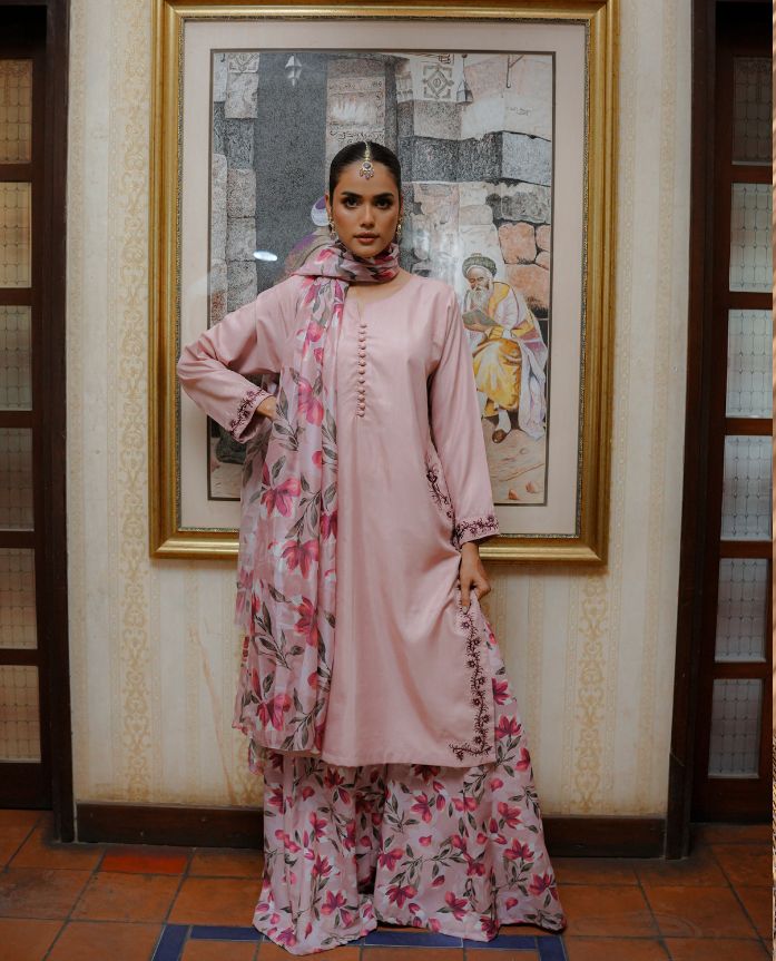 3-Piece Stitched Dhaka set.