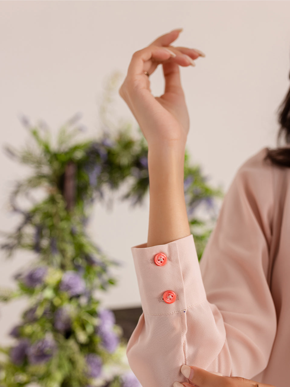 Description: This peach crepe dress features a flowing A-line design with pleating and a tailored waist for a feminine, sophisticated look. Versatile for both casual and formal occasions, it combines comfort with timeless elegance.