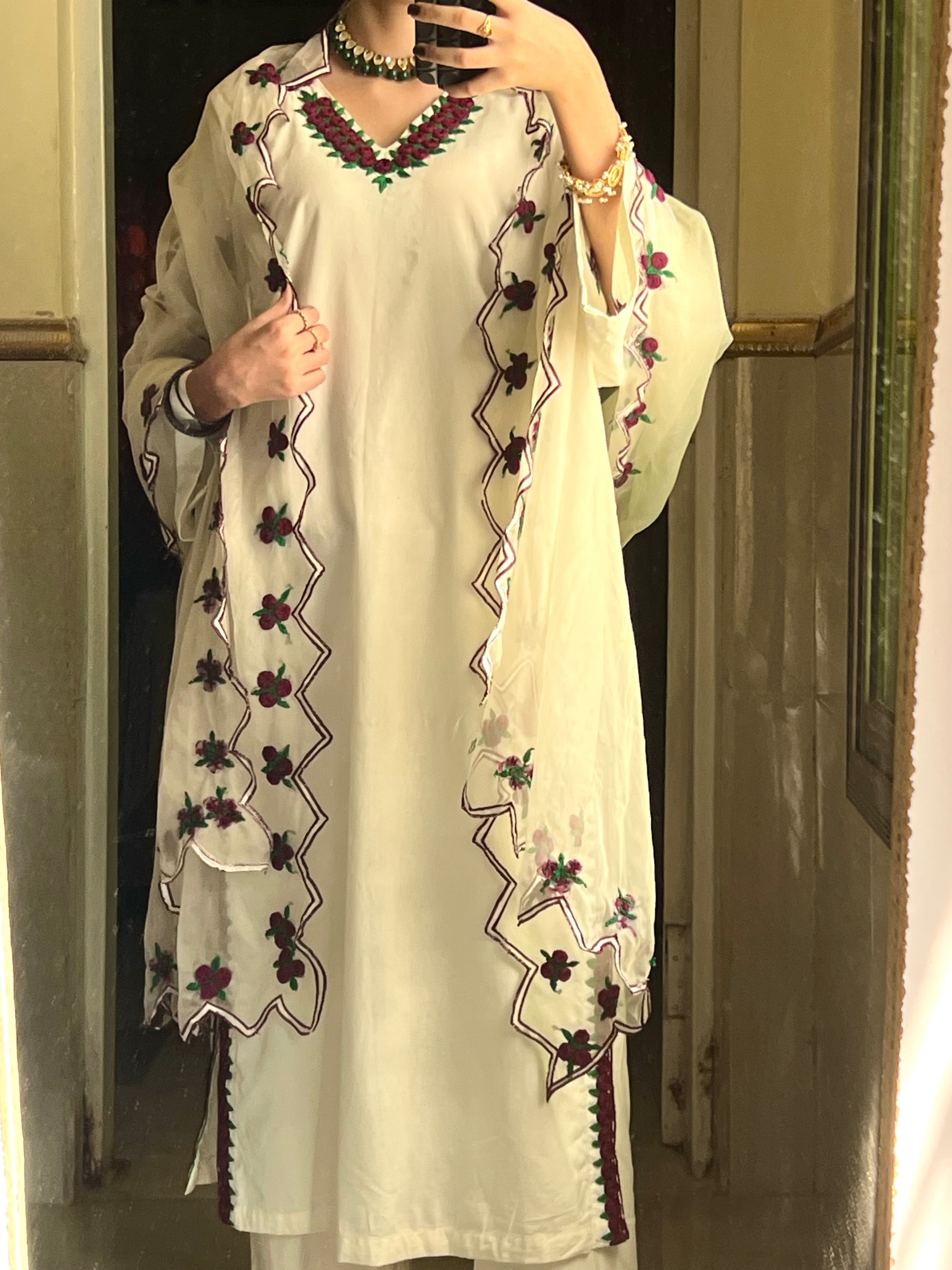 Artistry in every detail: Discover the intricate threadwork and delicate French knots that make this dress truly unique.