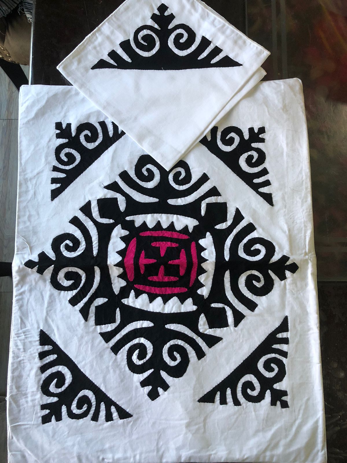 Ralli (appliquéd) means mix and connect. This is new table linen crafted by tehzeeb by women of rural village, nomedic tribes. Each piece gives insight of these Ralli makers thoughts and creativity.