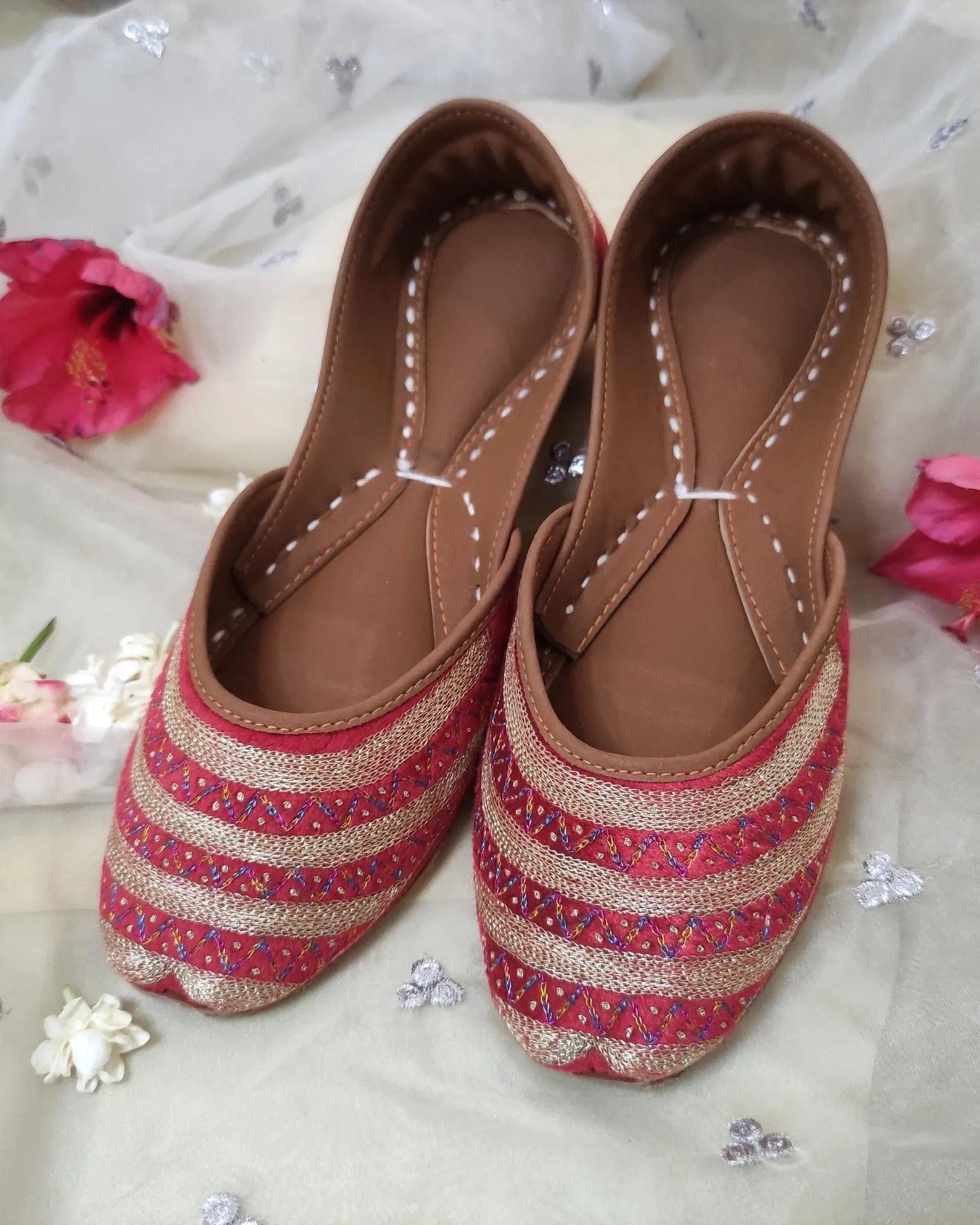 Velvet Tilla khussa, Golden tilla work on front and back base along with soft velvet in pure leather.