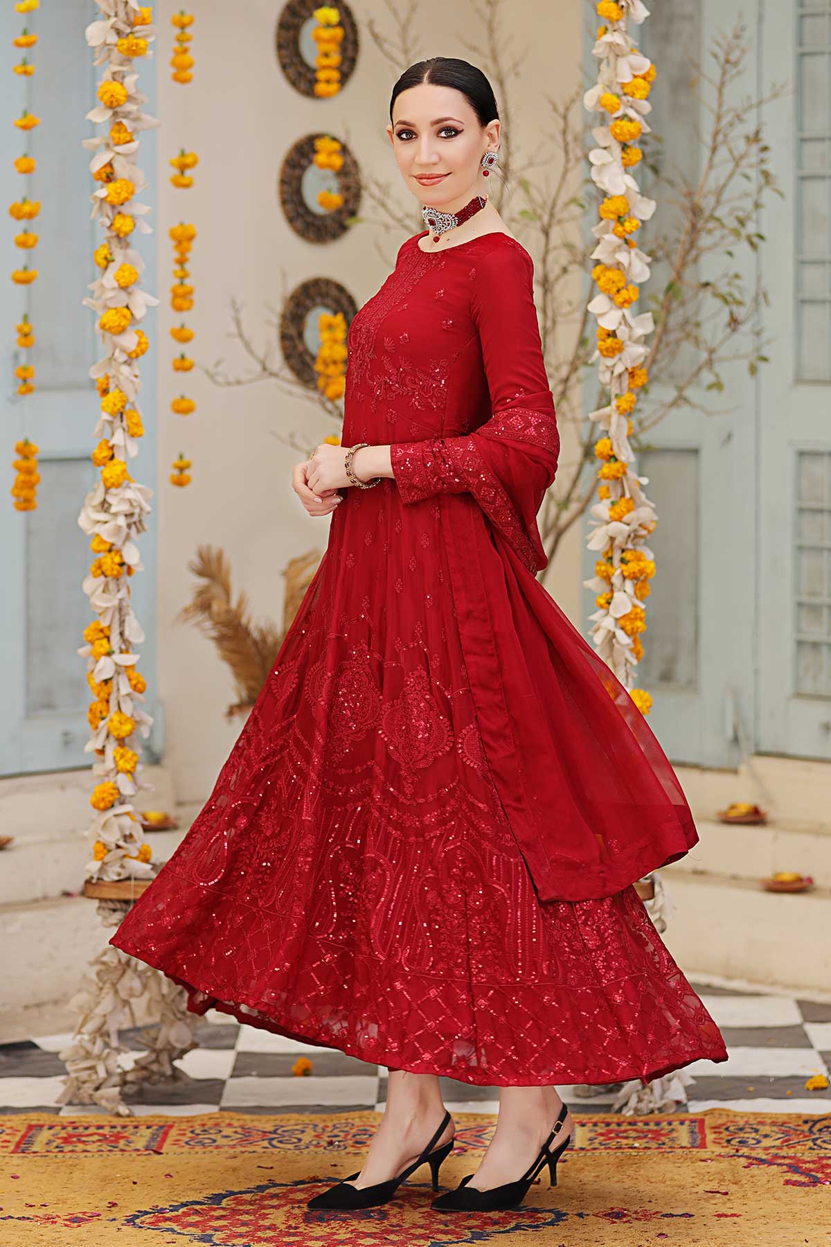 Embroidered Front Back Body on Chiffon