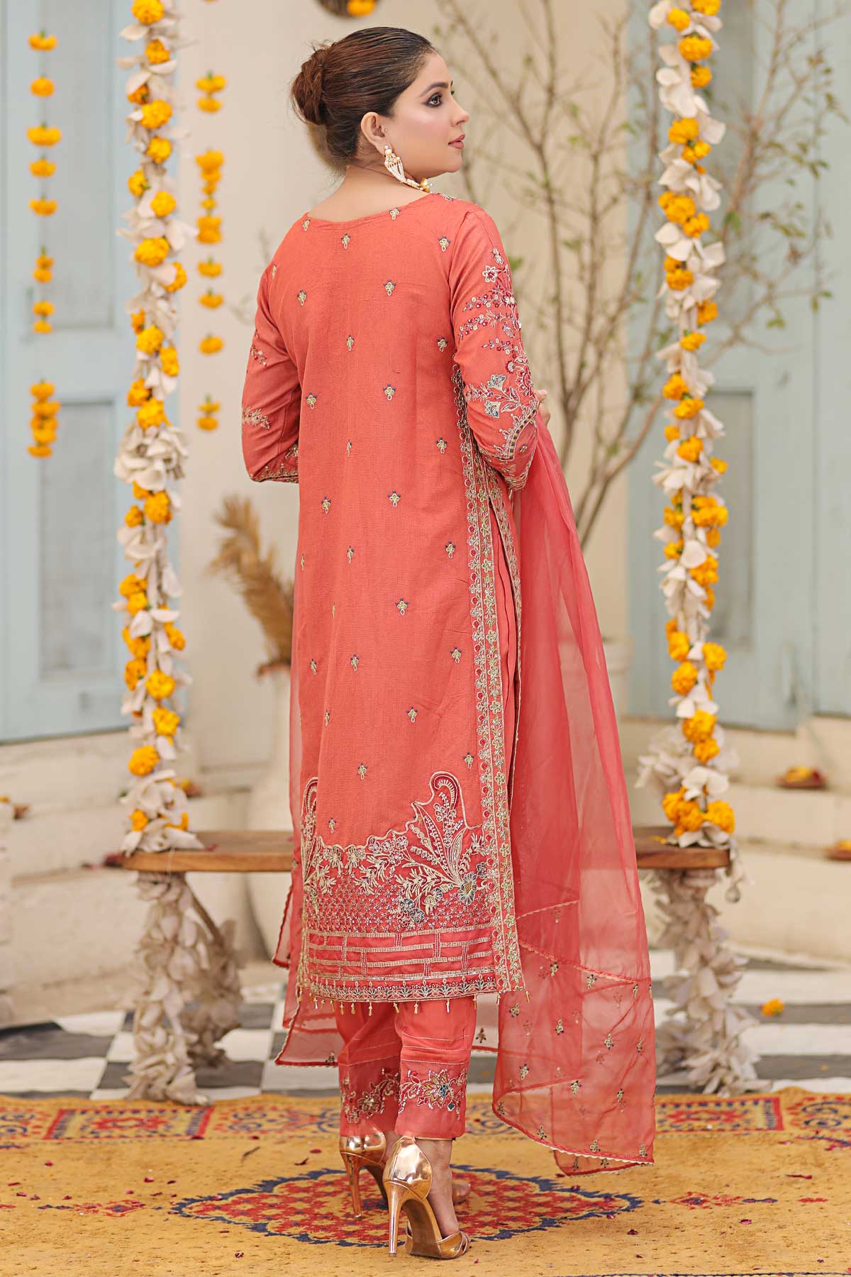 Embroidered Front on cotton net finished with embroidered lace and tussle