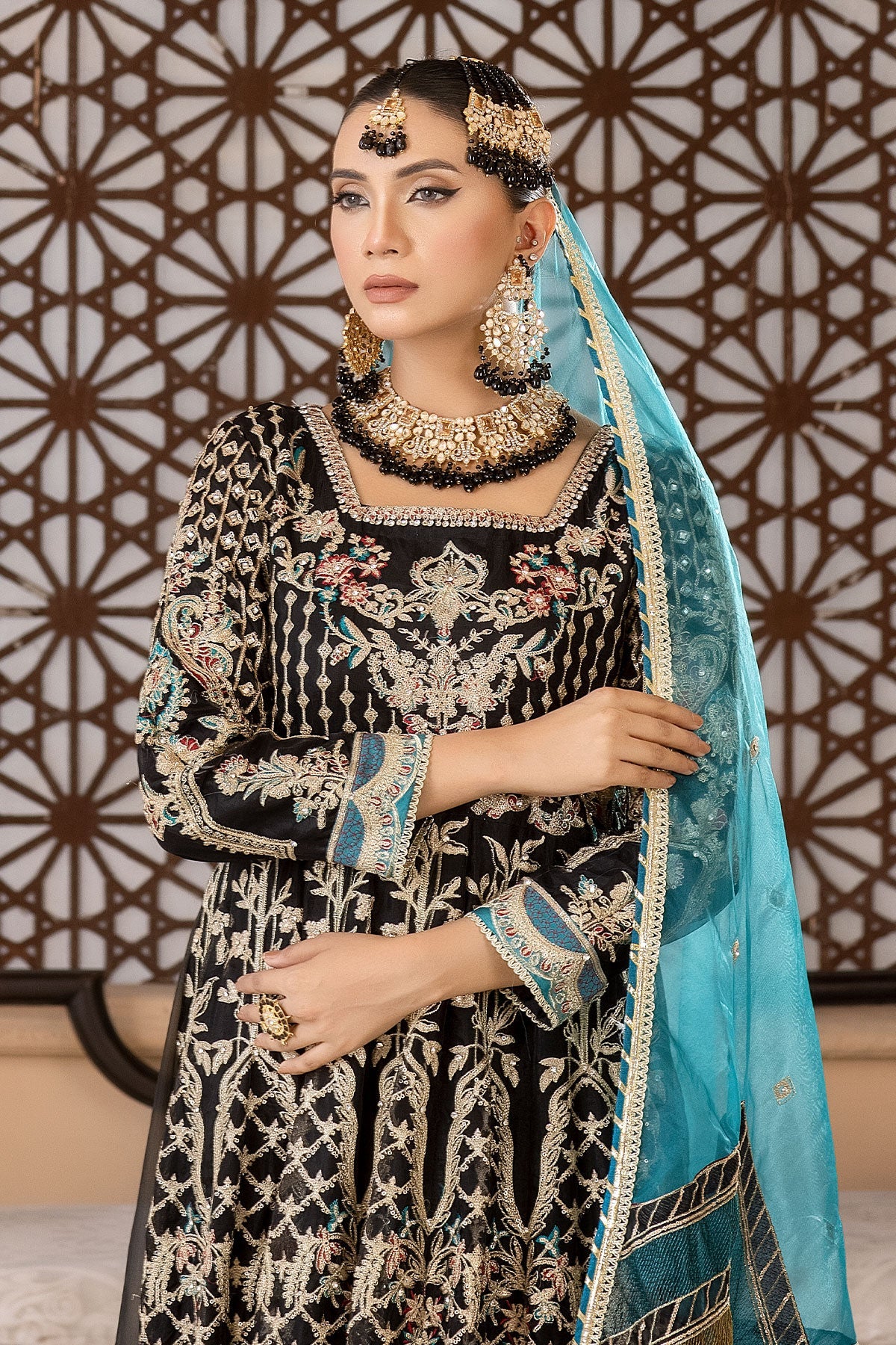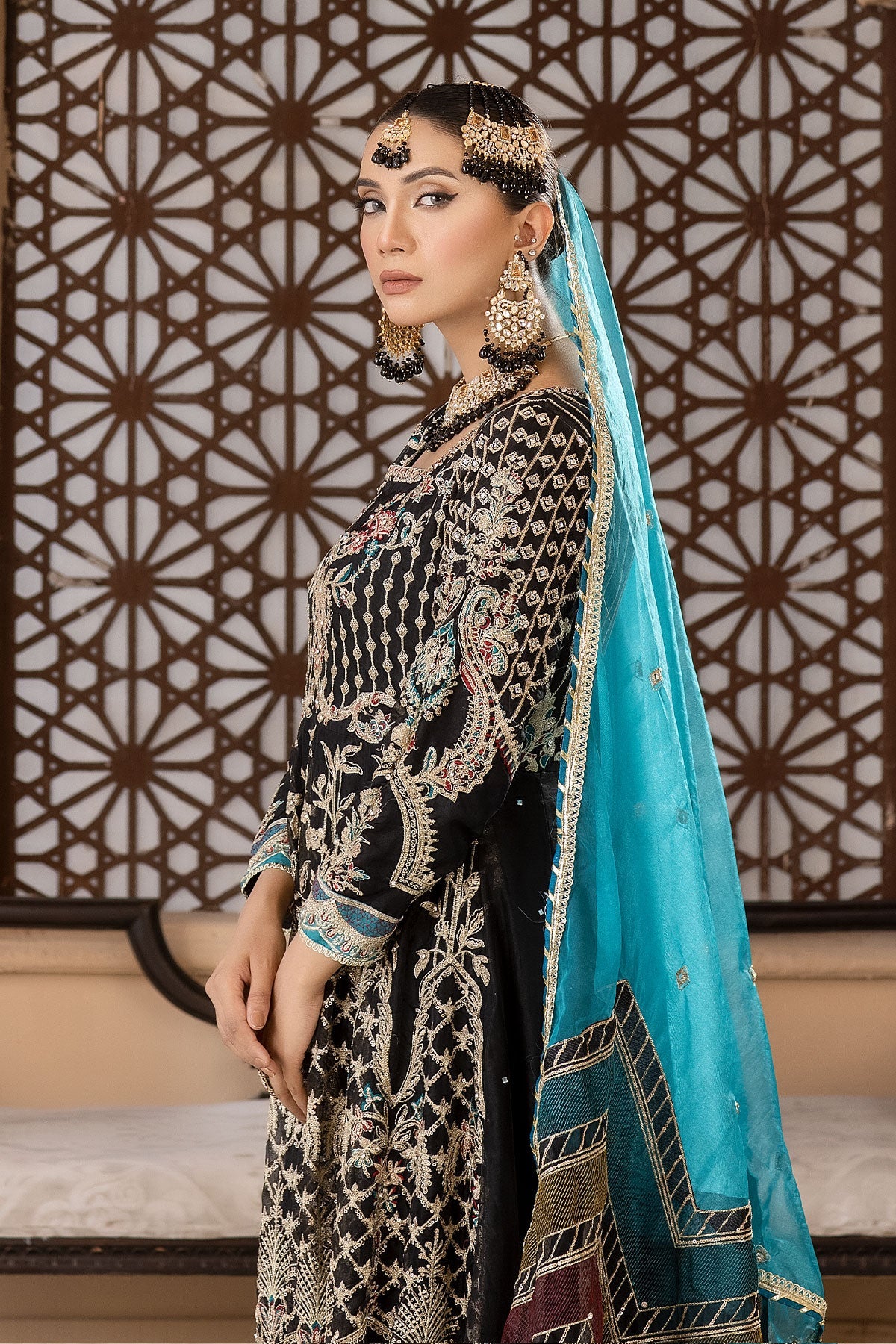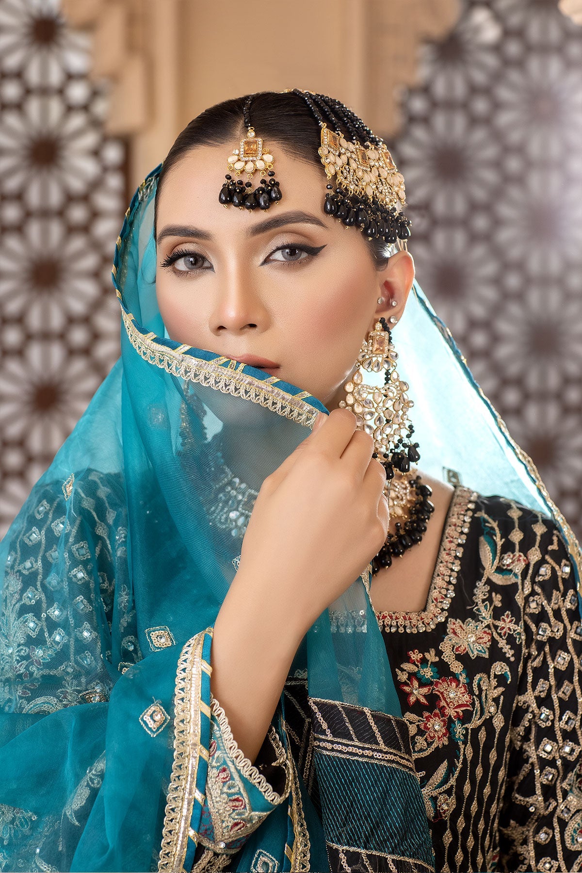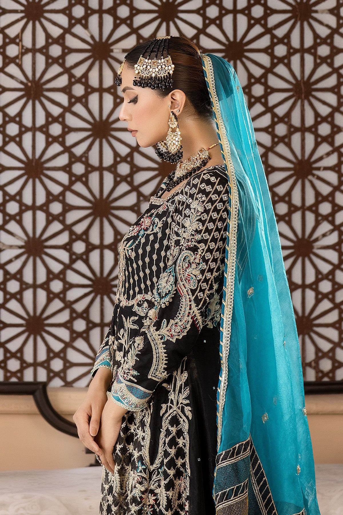 Beautify your bridal look. Boasting a maxi style with intricate details like embroidery, embellishments, and a tussle to complete the look, this piece is ideal for wedding wear. It also comes with a plain viscose trouser and an embroidered organza dupatta with fancy laces for an added touch of luxury.