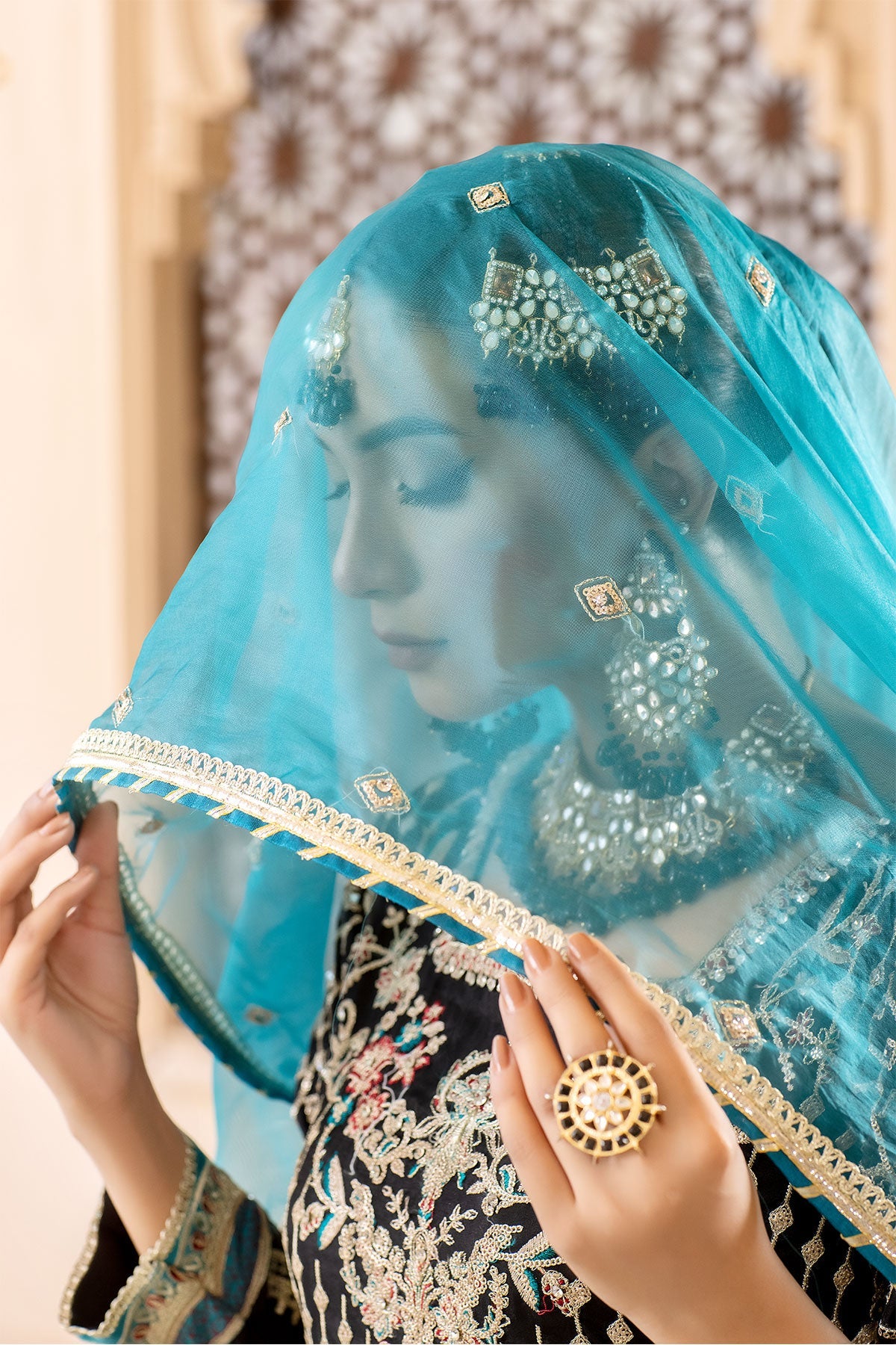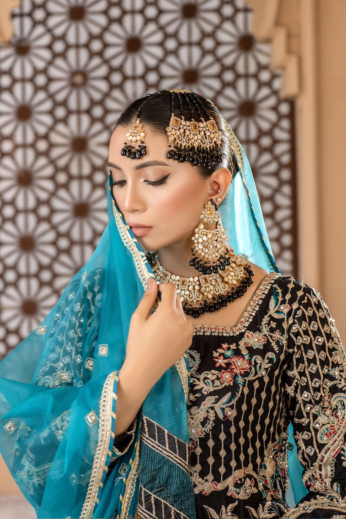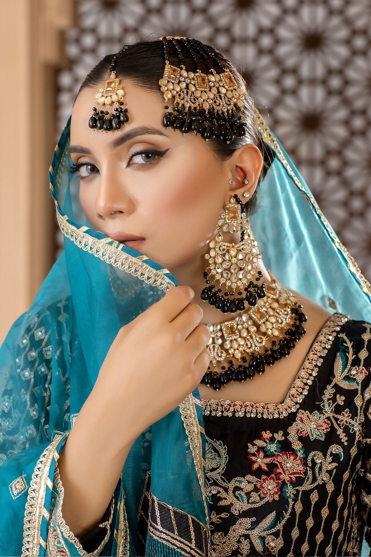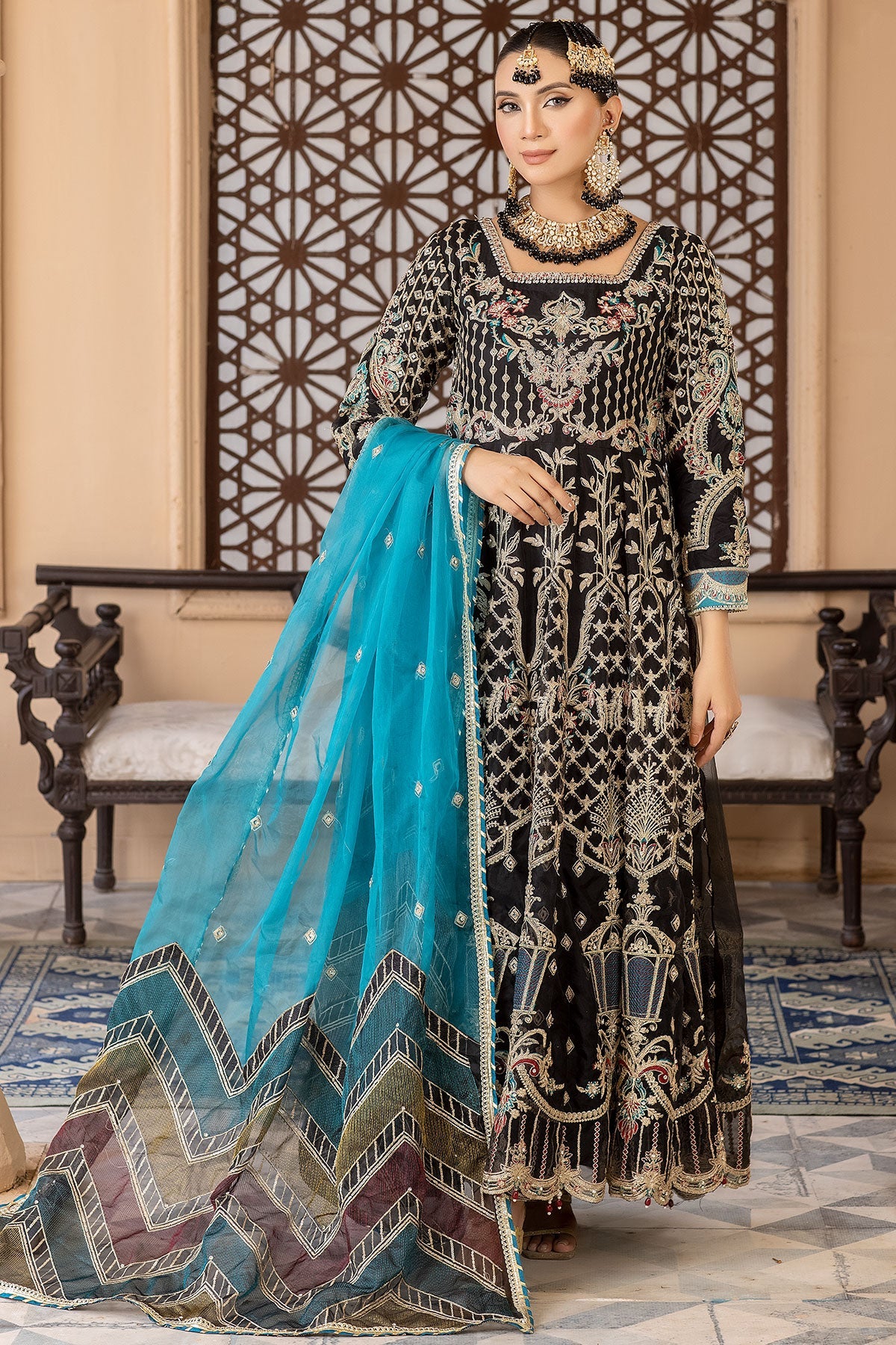 Beautify your bridal look. Boasting a maxi style with intricate details like embroidery, embellishments, and a tussle to complete the look, this piece is ideal for wedding wear. It also comes with a plain viscose trouser and an embroidered organza dupatta with fancy laces for an added touch of luxury.