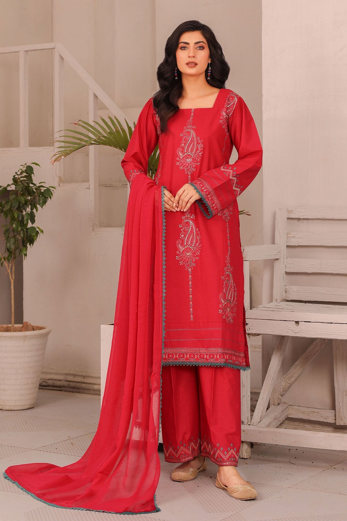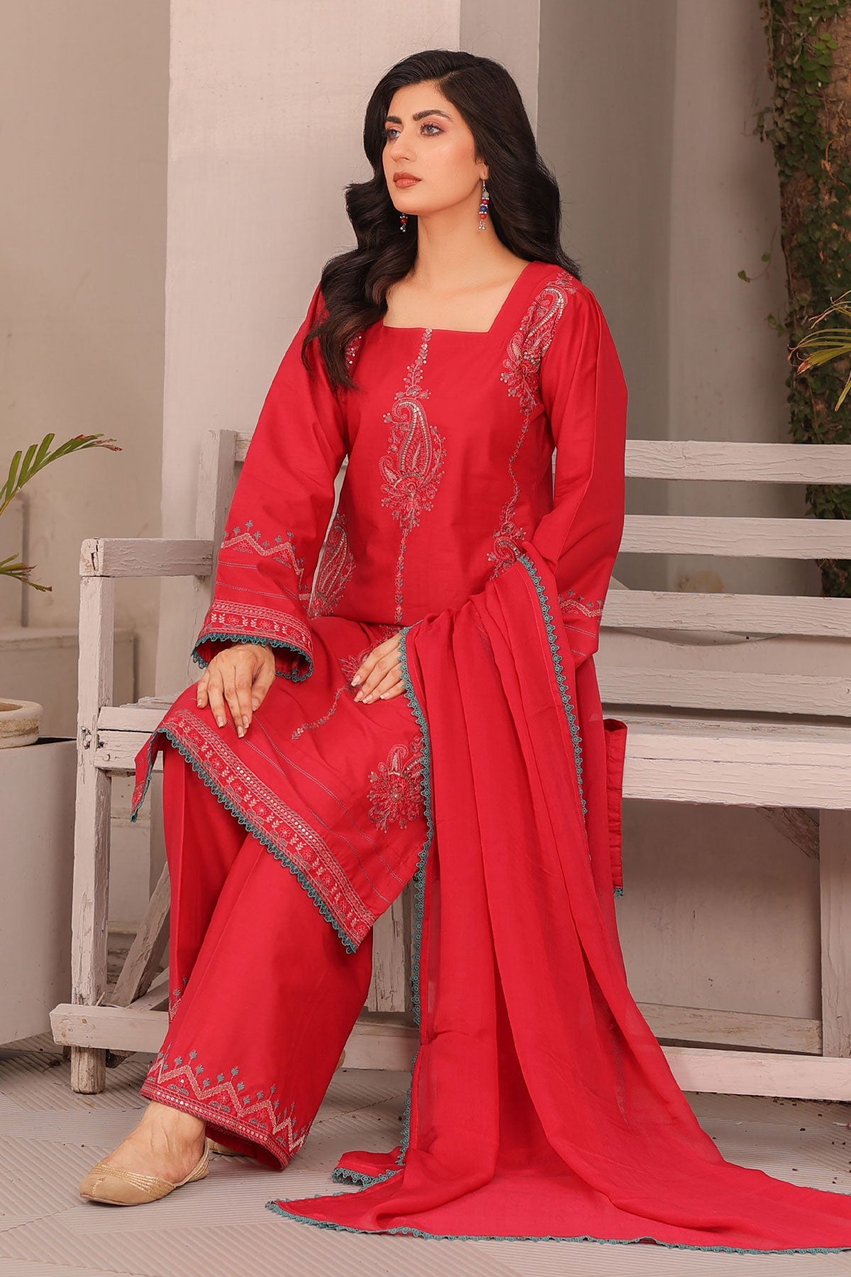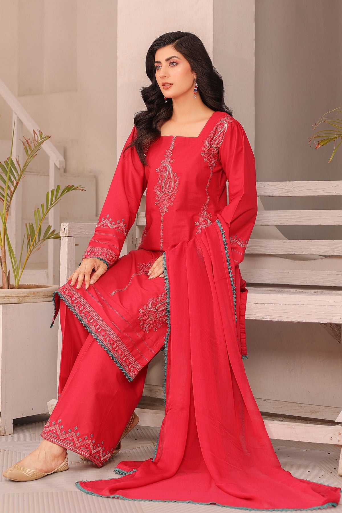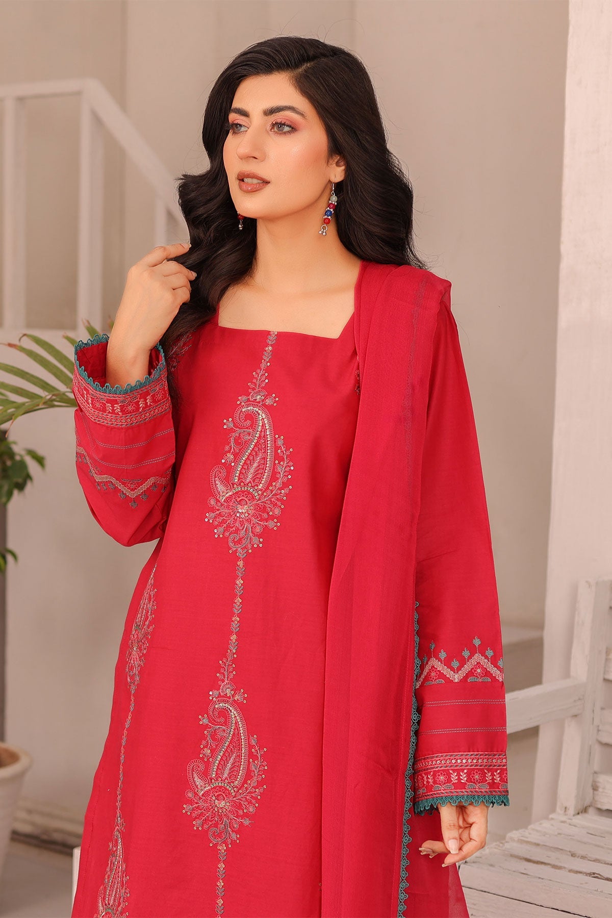 Get ready to elevate your Eid style! This elegant outfit features an embroidered front and sleeves on comfortable cotton, adorned with delicate lace work for a touch of luxury. The plain cotton trouser adds a modern contrast, while the chiffon dupatta with lace work completes the elevated look. A must-have addition to your wardrobe this Eid!