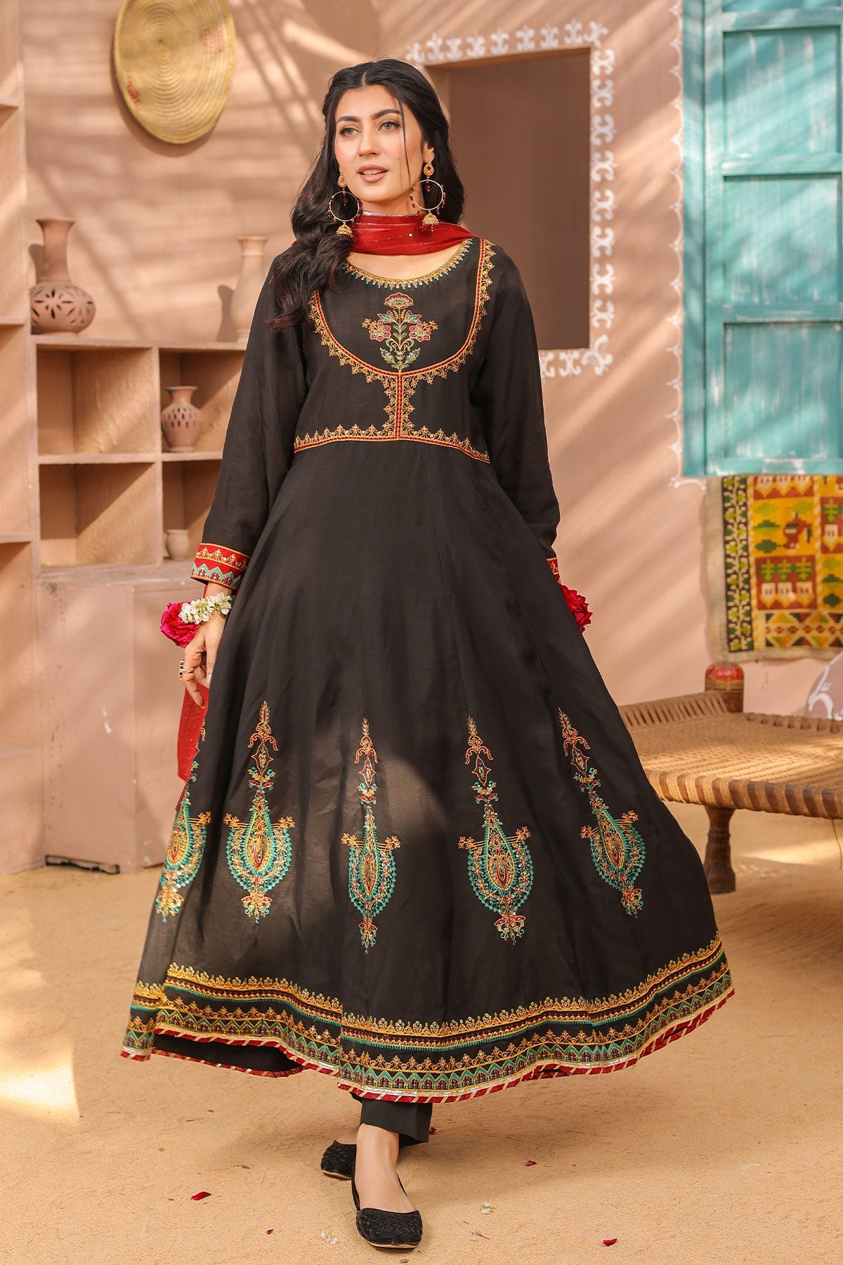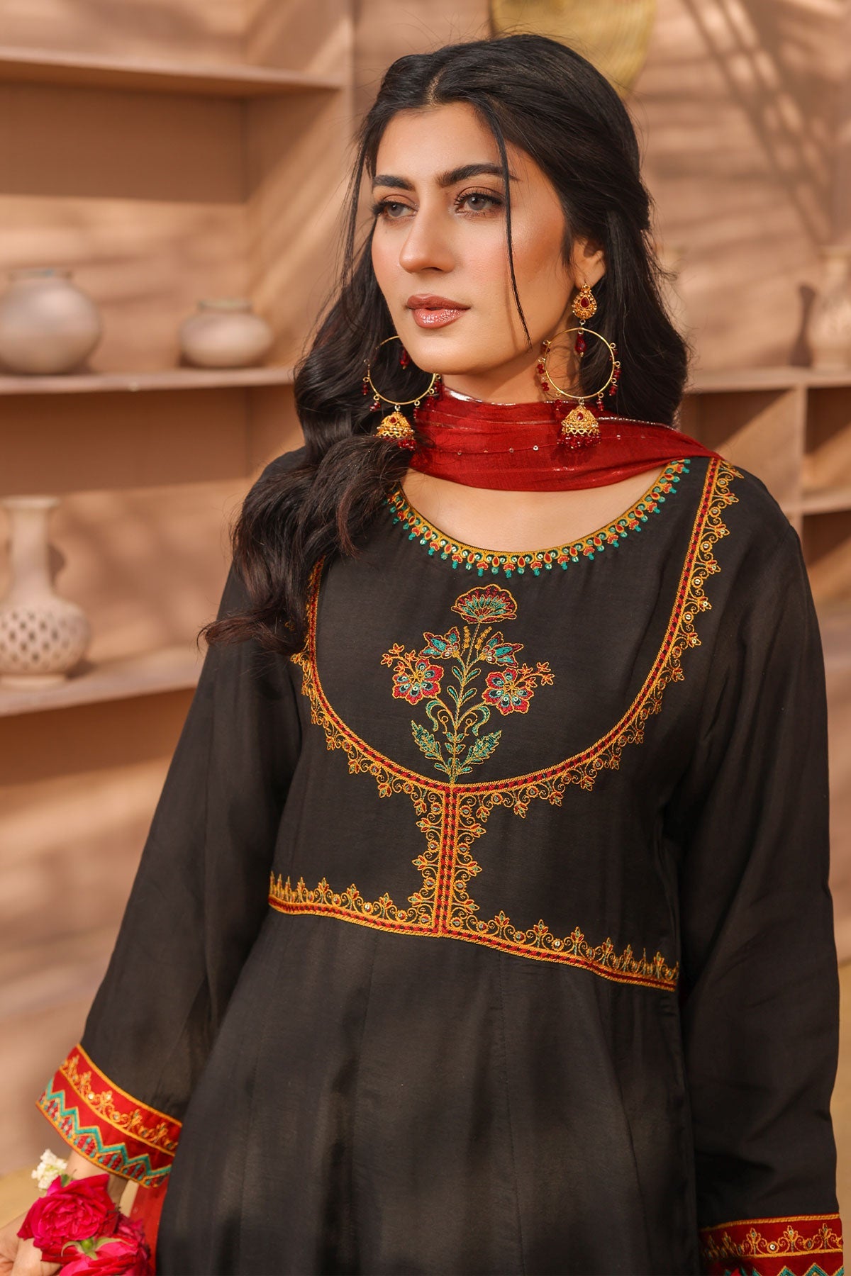 Elevate your wardrobe. The embroidered front and back on viscose adds a touch of sophistication, while the embroidered lace on the sleeves brings a feminine touch. The plain viscose trouser provides comfort and versatility, and the diamond line contrast dupatta adds a pop of color. Look and feel your best with this must-have piece.