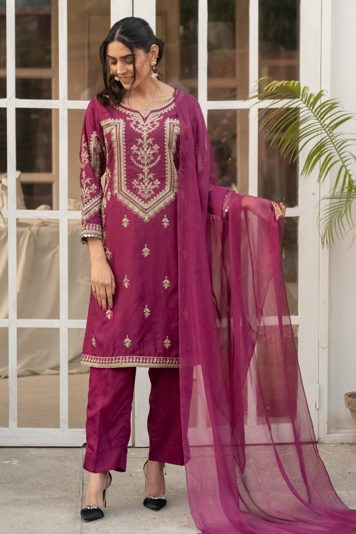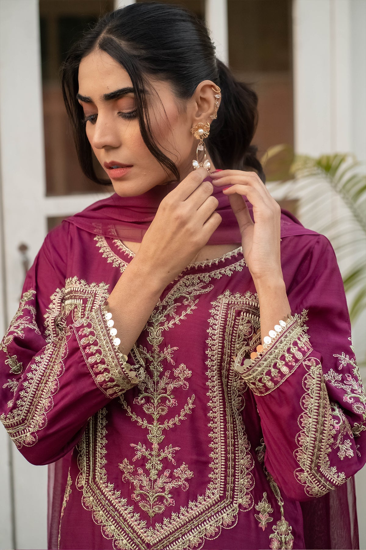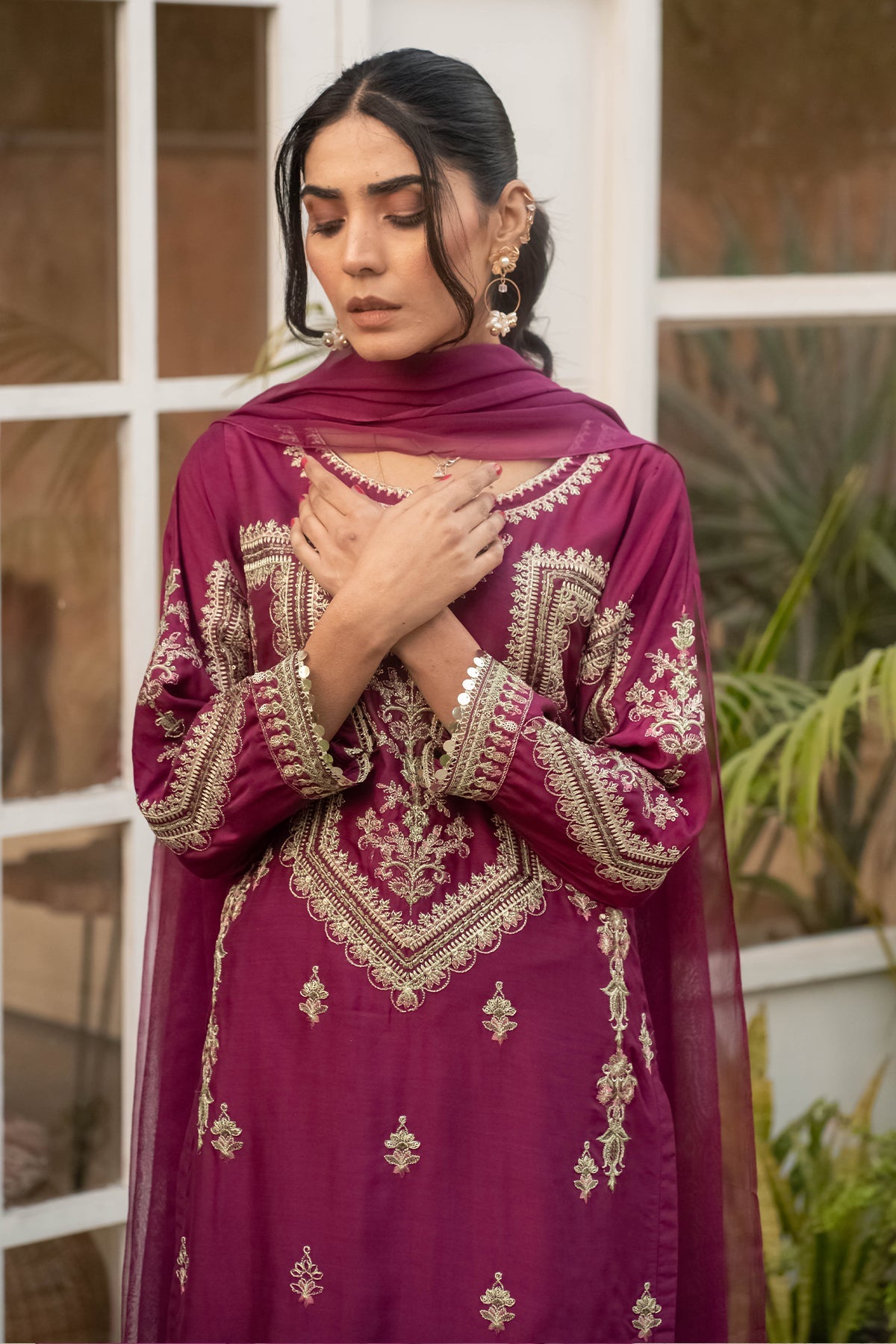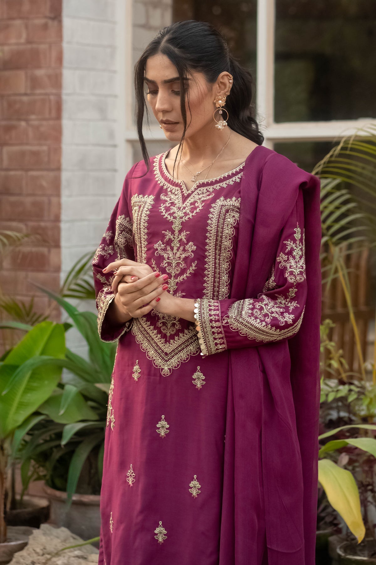 The front, sleeves, and back are all beautifully embroidered on smooth viscose, while a touch of lace adds delicate charm. Its plain chiffon dupatta and viscose trouser complete the look. Upgrade your wardrobe now with this optimistic and sophisticated ensemble.