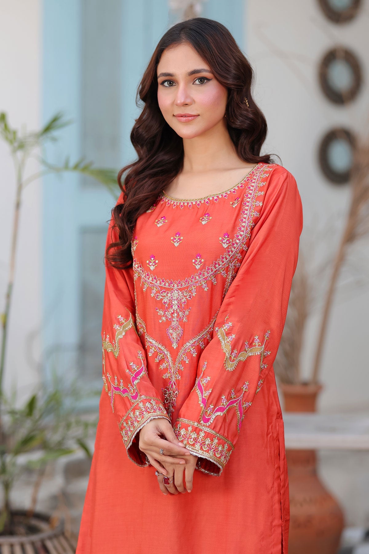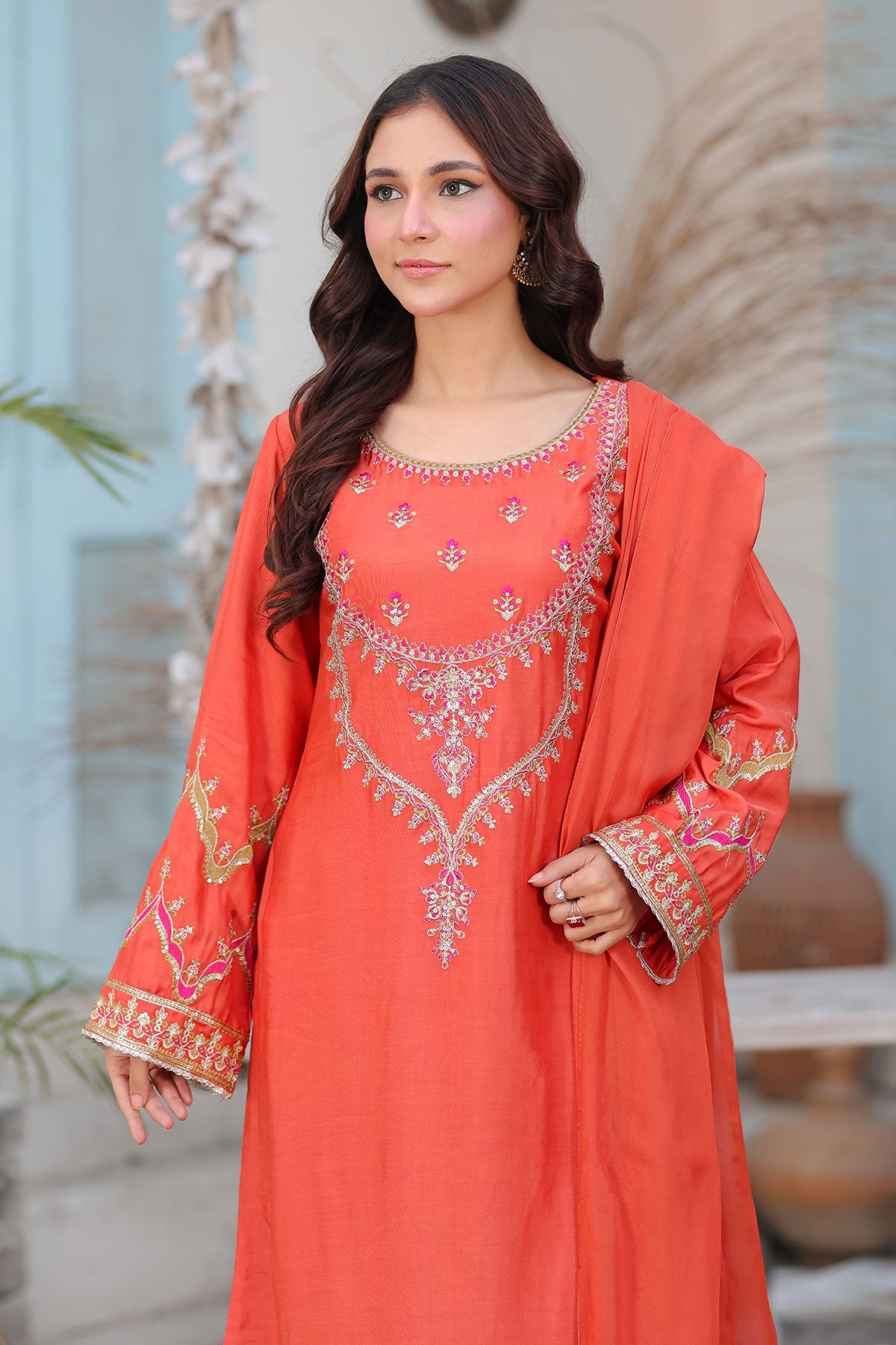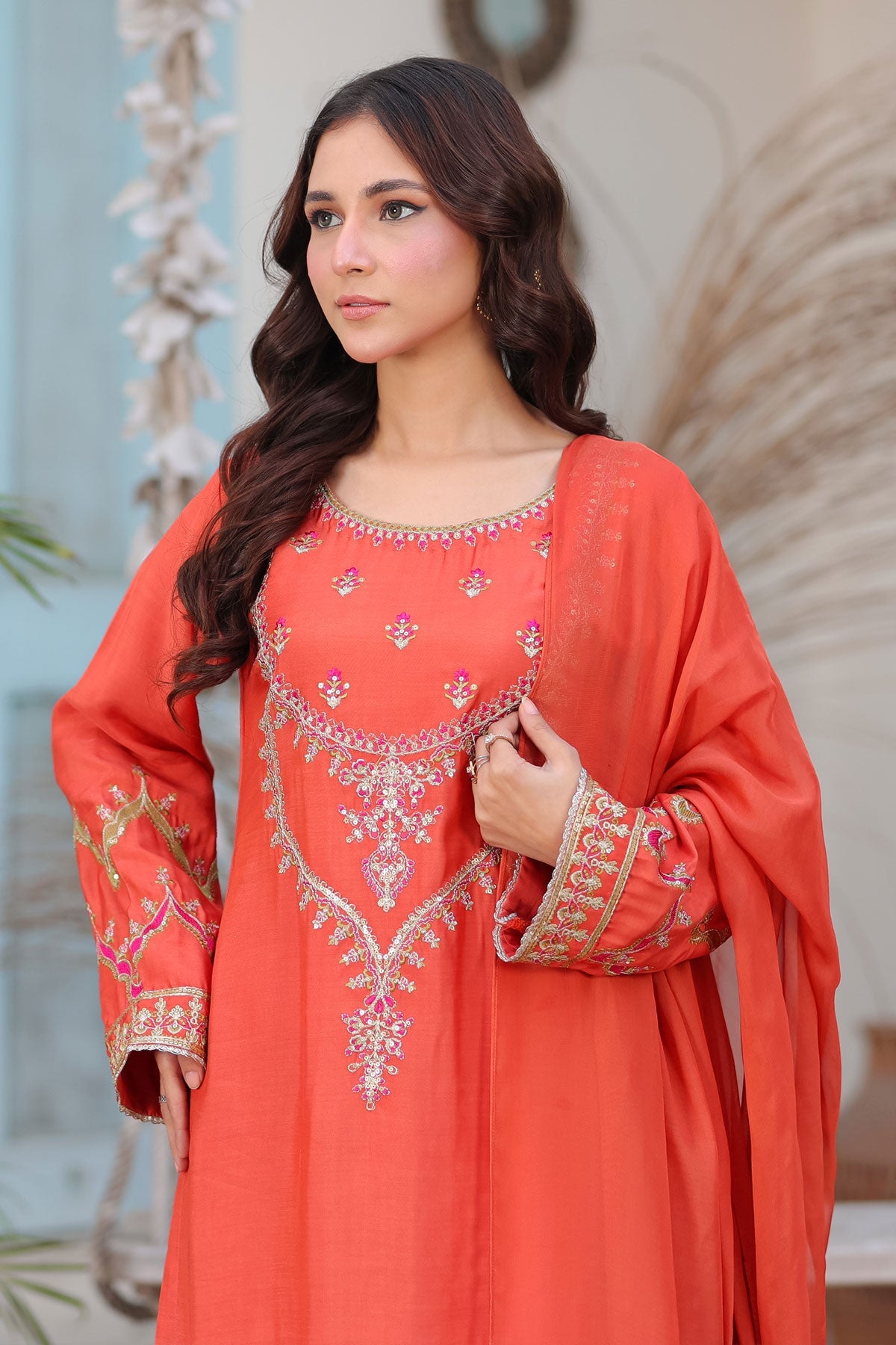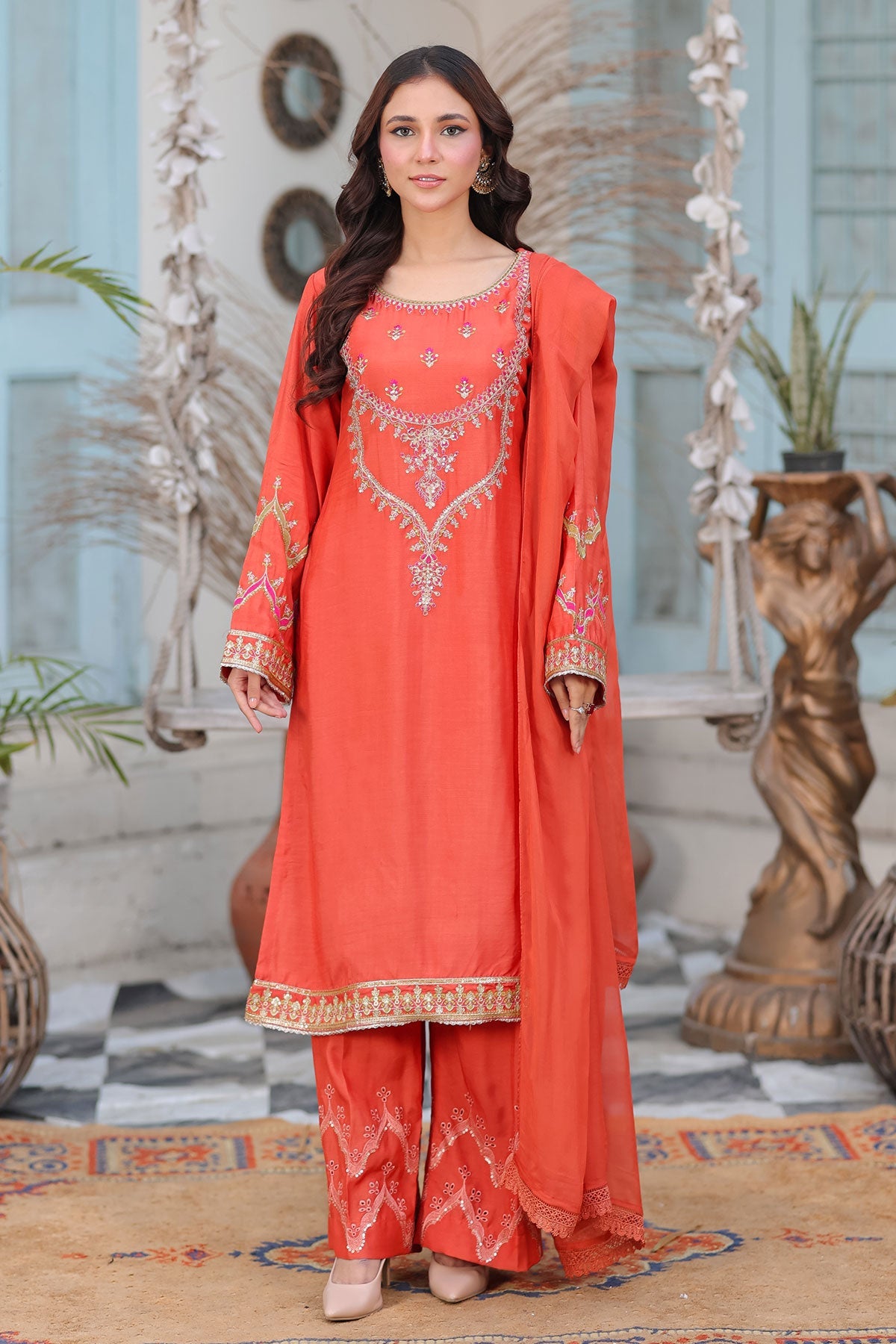 Add elegance to your wardrobe. The embroidered viscose top and sleeves give a luxurious touch, while the chiffon dupatta with lace adds a feminine flair. Complemented by an embroidered viscose trouser, this outfit will make you stand out in any occasion.