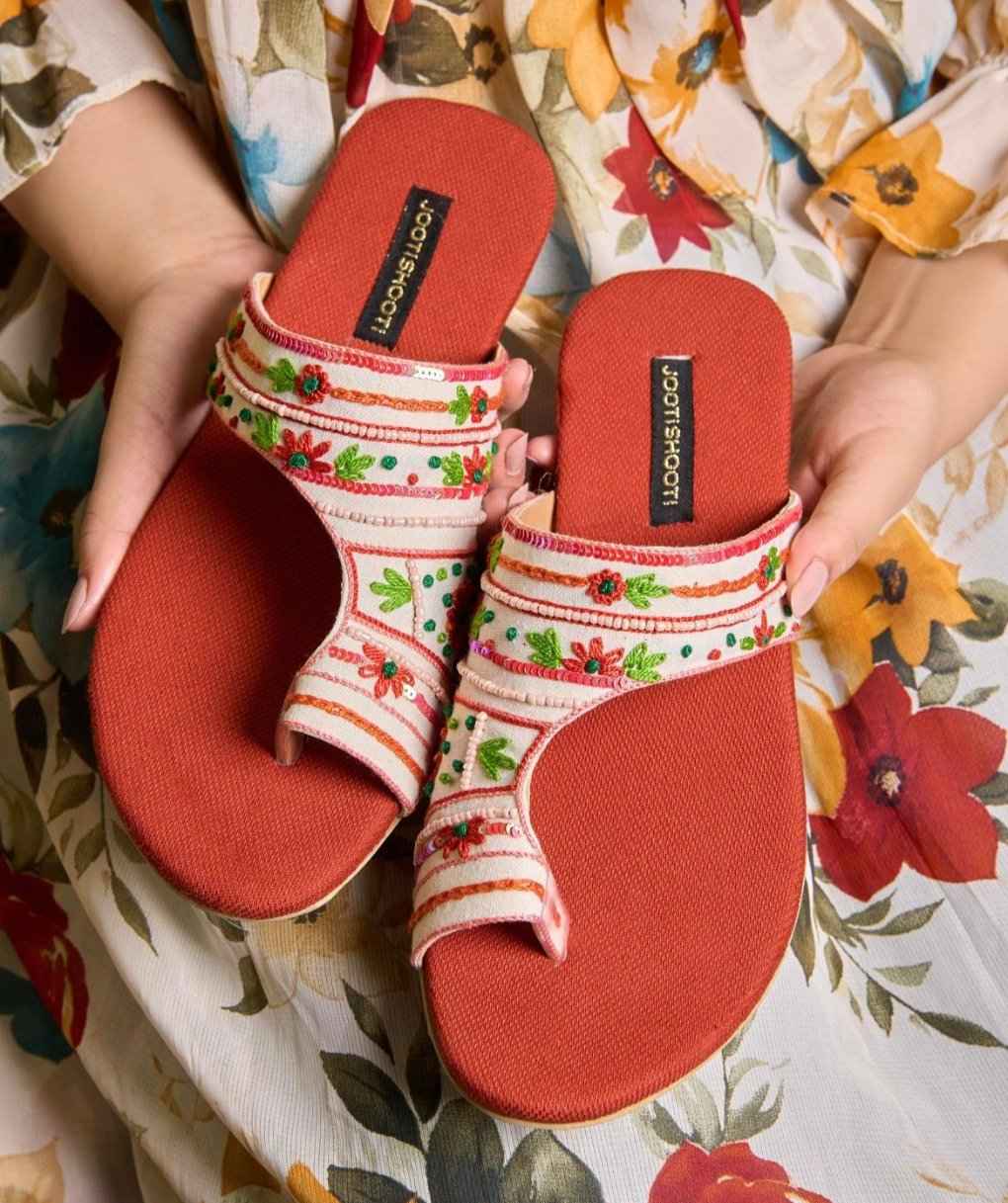Bring the warmth and beauty of the outdoors into your home with our Terra Verde Slipper, featuring a rich rust color and stunning green embroidery. Intricate green embroidery adds a pop of color and a touch of whimsy to the slipper, reminiscent of lush foliage and natural beauty.