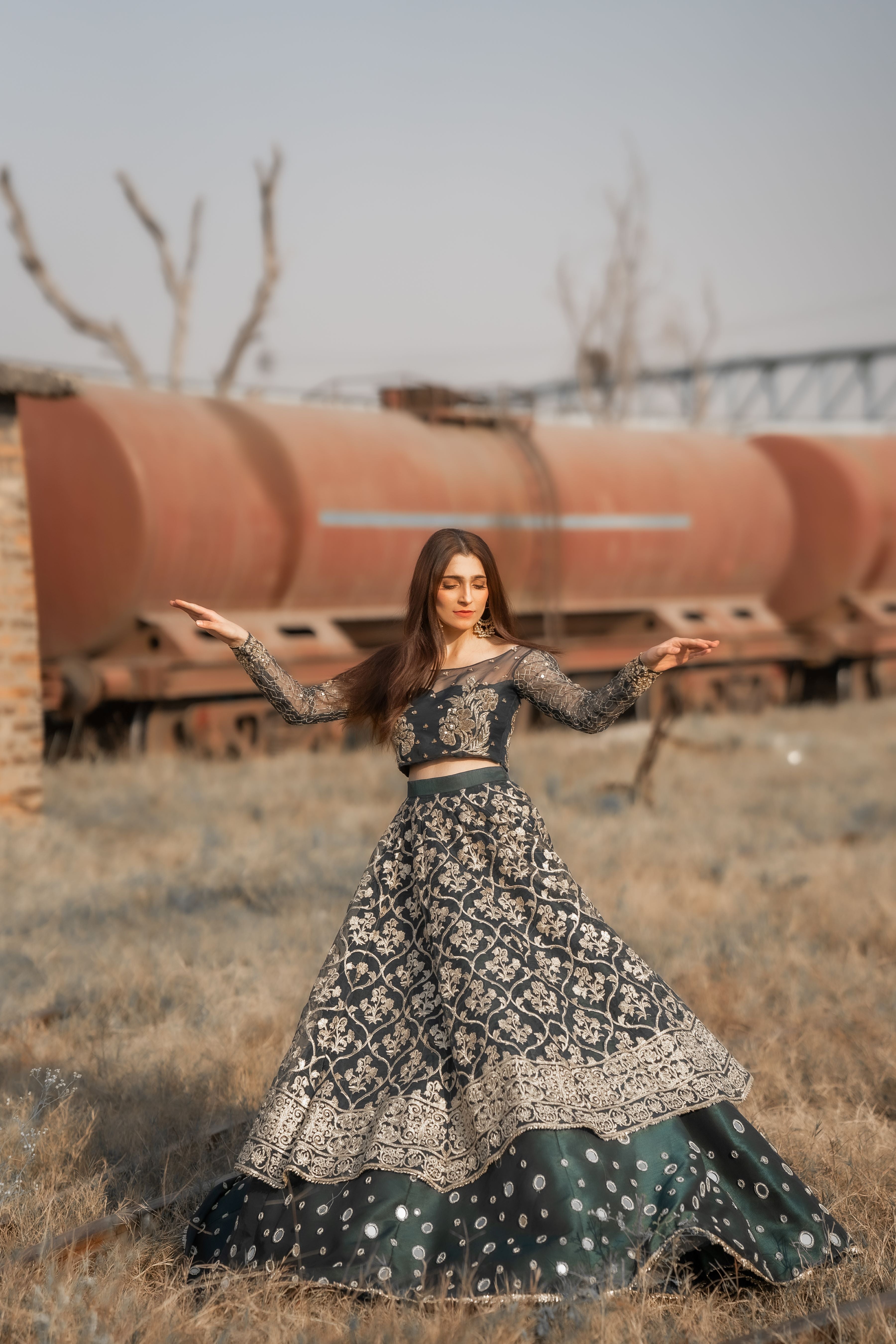 Description: Zardozi work on Kurti and sleeves. Embroidery on Lehnga & mirror work.