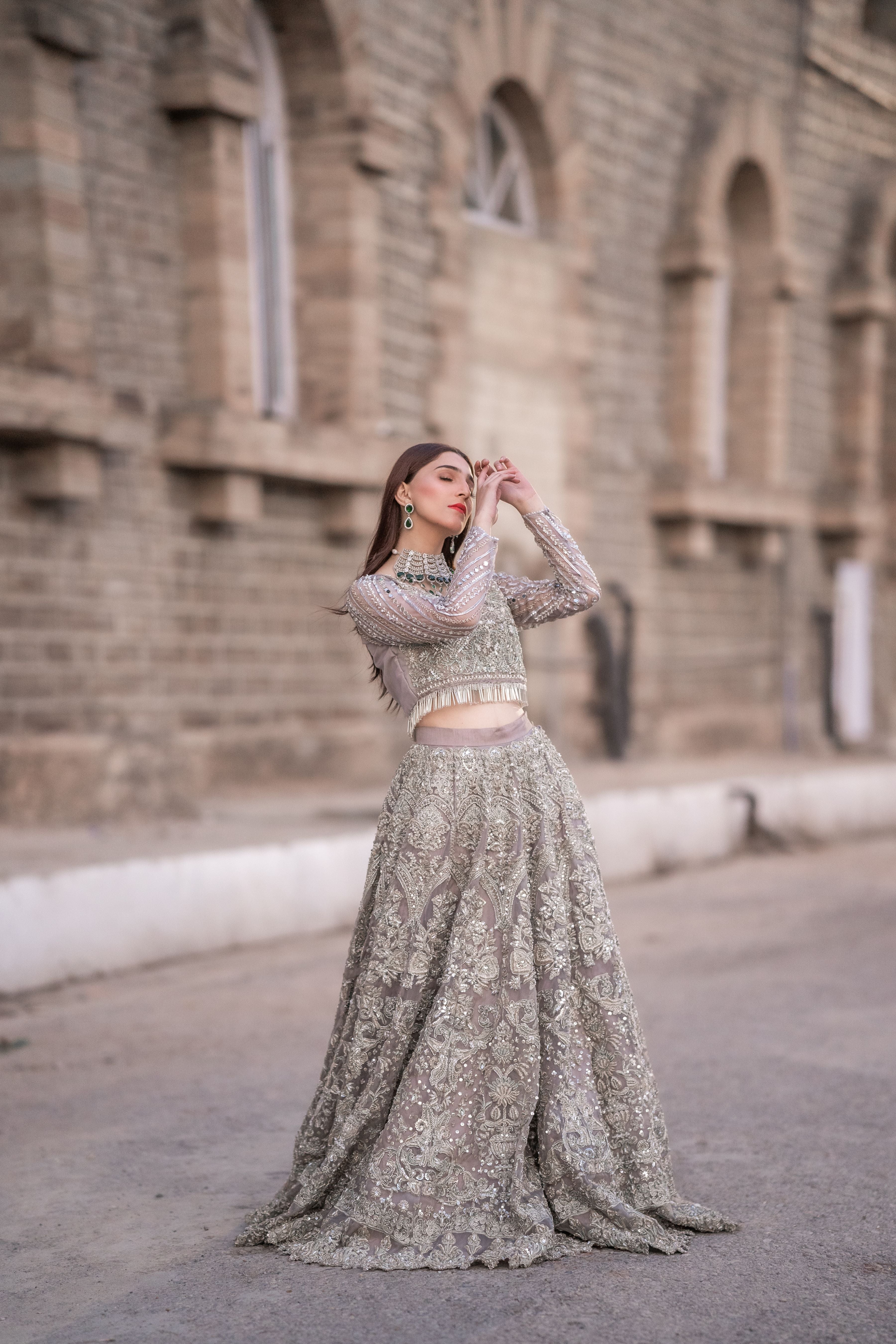 Description: Zardozi work on blouse, dupatta & front panel of lehenga. Embroidery on front & back lehenga. Mirror work on Sleeves