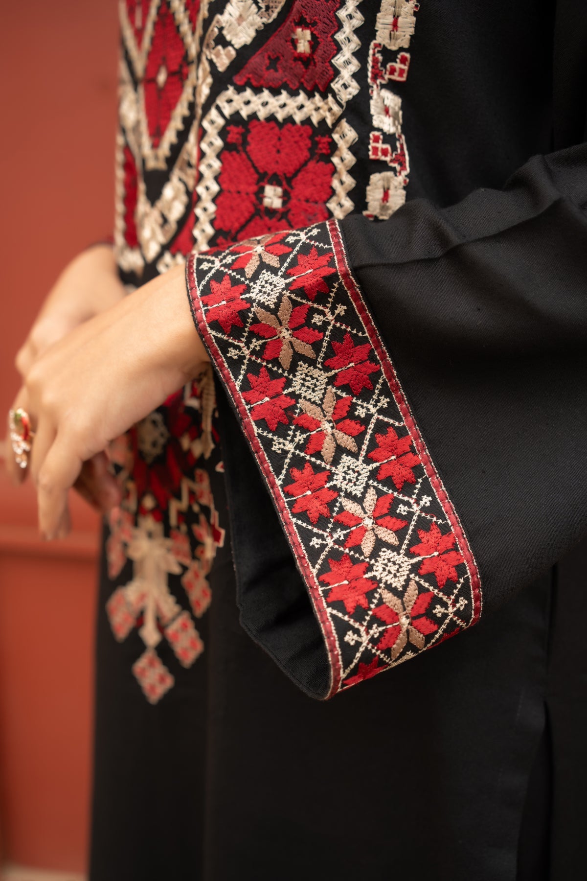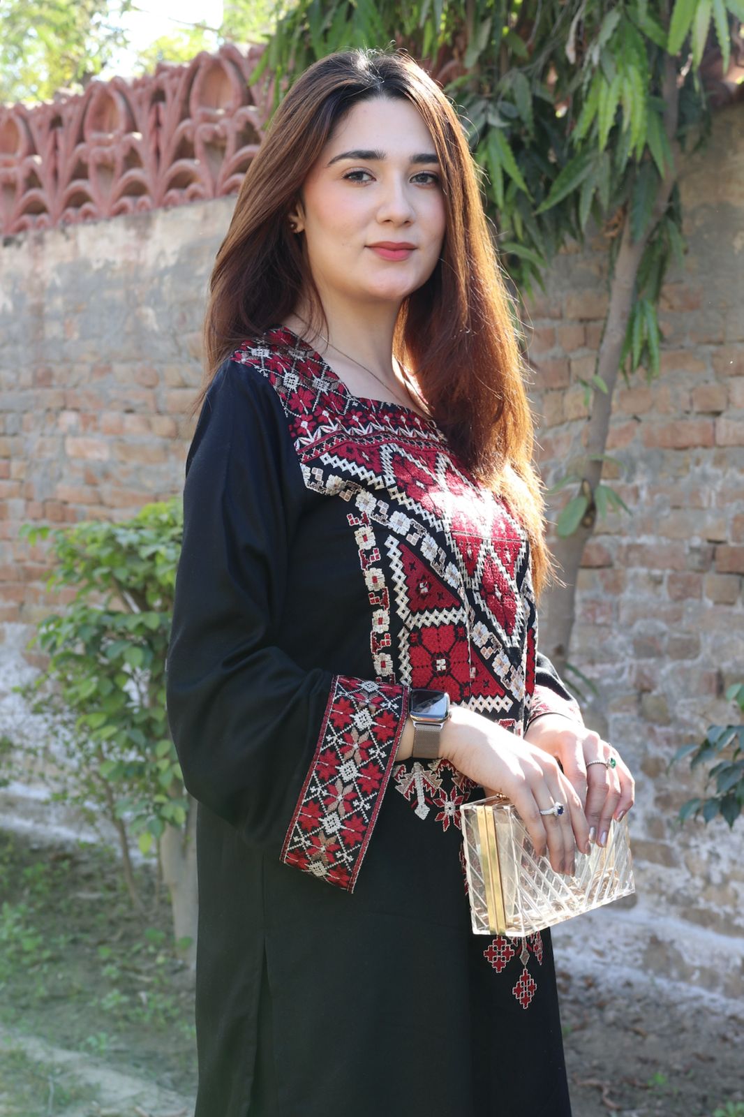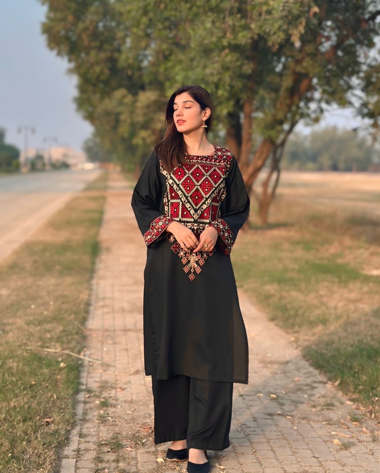 Step into timeless sophistication with this exquisite black two-piece set. Crafted from high-quality Stapple Karandi, the ensemble features an embroidered long shirt that is perfectly paired with loose straight trousers. The delicate embroidery adds depth to the design, making it a striking combination of modern elegance and traditional craftsmanship. Perfect for any formal occasion or evening out, this dress will make you shine.