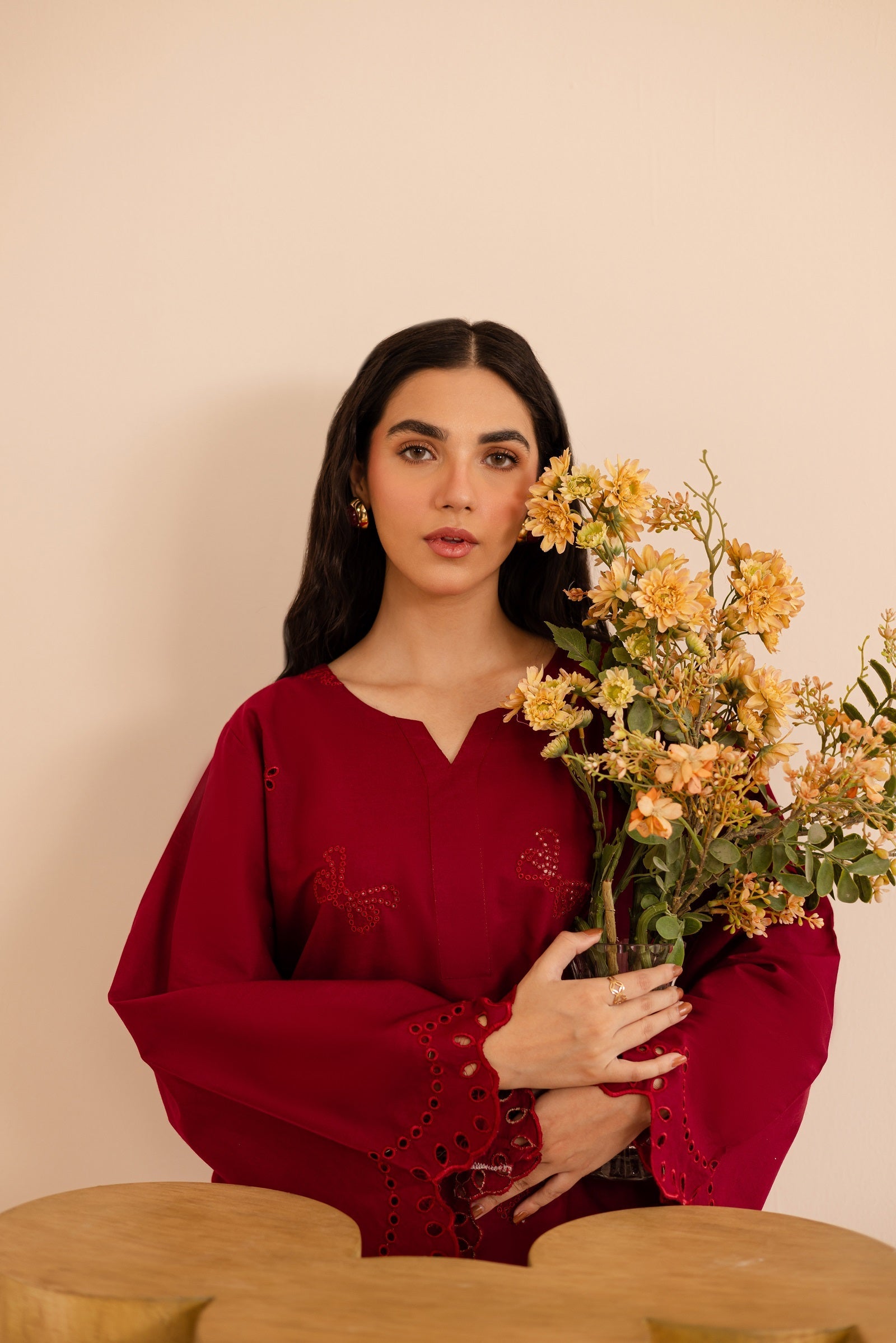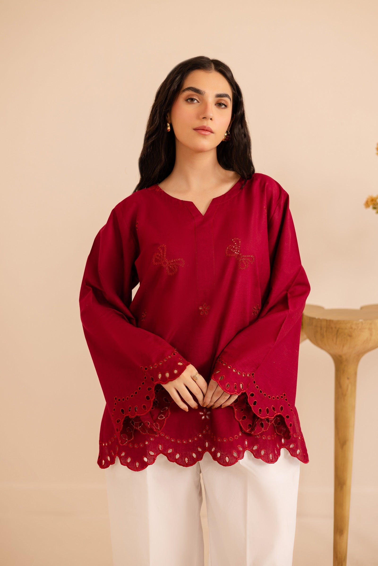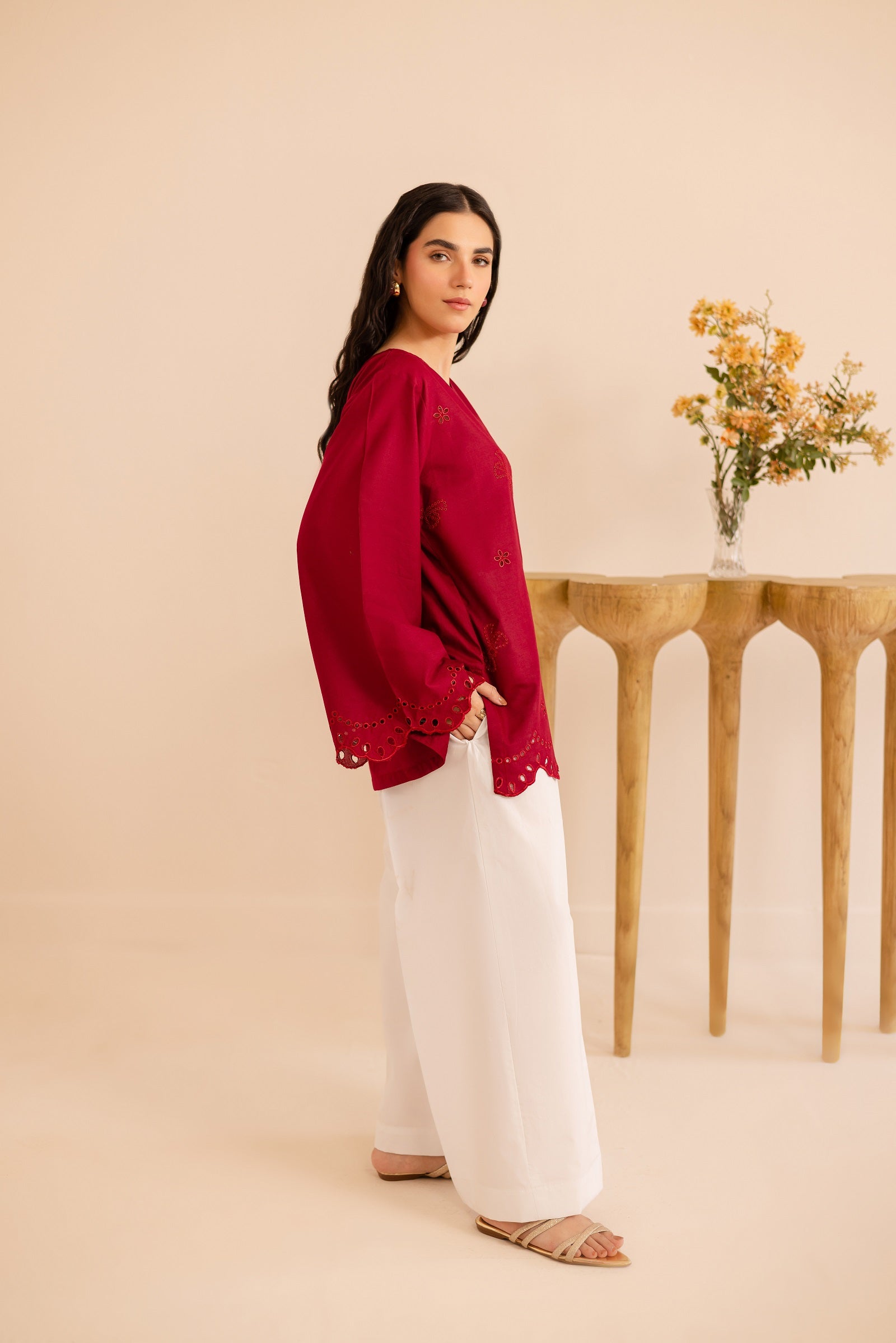 Description: Schiffli Embroidered Shirt and White Plazzo for Summers.
