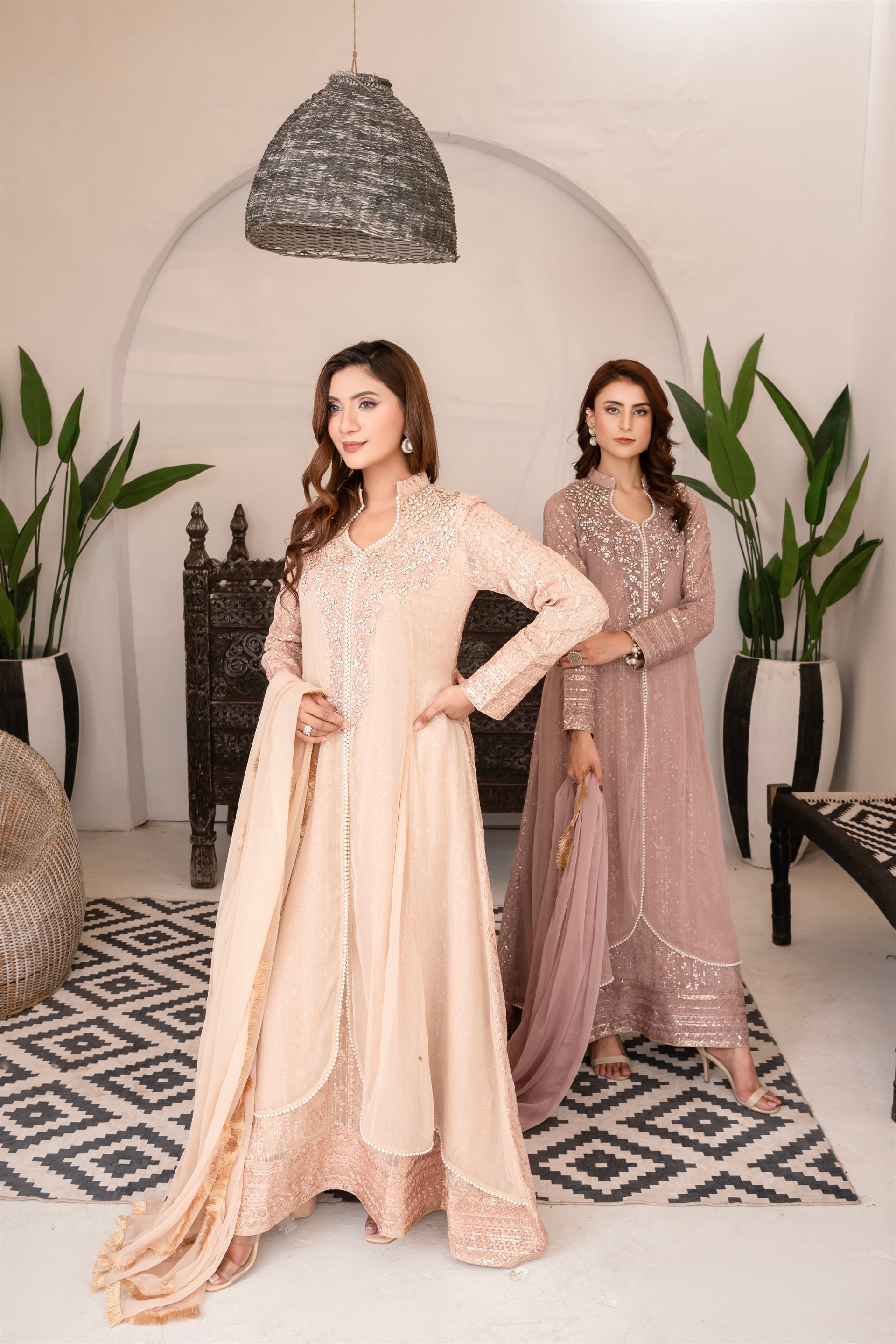 Additional Description: Status : * Embroidered With Sequence,Pearl Work & Stone Work* Fabric : *Chiffon* Gala : *Embellished* Sleeves: *Heavy Embroidery sleeves With Sequence Work* Trouser :* Crape* Dupatha: *Chiffon Dupatta* Lining malai is Attached and will be include Stitched stock include shirt , lining , trouser and dupatha Stitched will be same as shown in the image Actual color may slightly vary from the image
