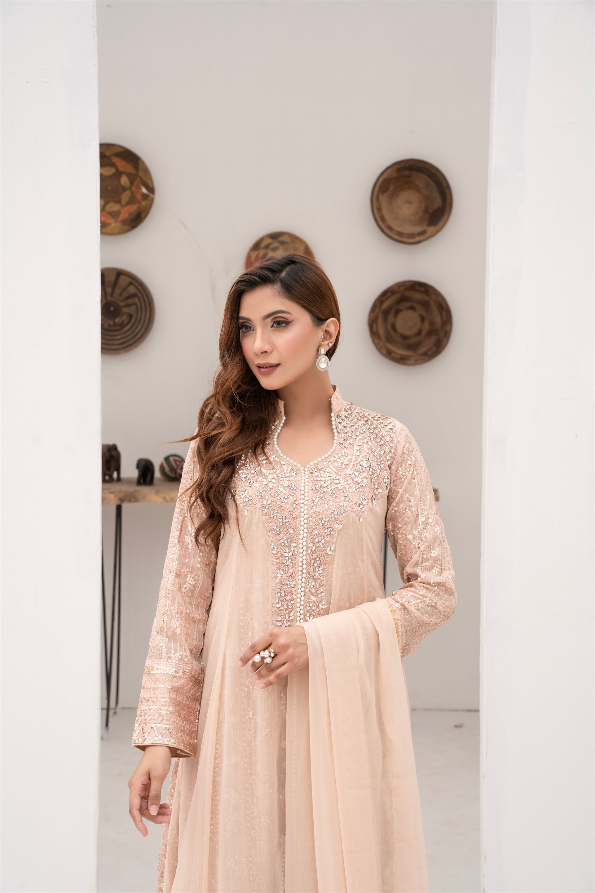 Additional Description: Status : * Embroidered With Sequence,Pearl Work & Stone Work* Fabric : *Chiffon* Gala : *Embellished* Sleeves: *Heavy Embroidery sleeves With Sequence Work* Trouser :* Crape* Dupatha: *Chiffon Dupatta* Lining malai is Attached and will be include Stitched stock include shirt , lining , trouser and dupatha Stitched will be same as shown in the image Actual color may slightly vary from the image
