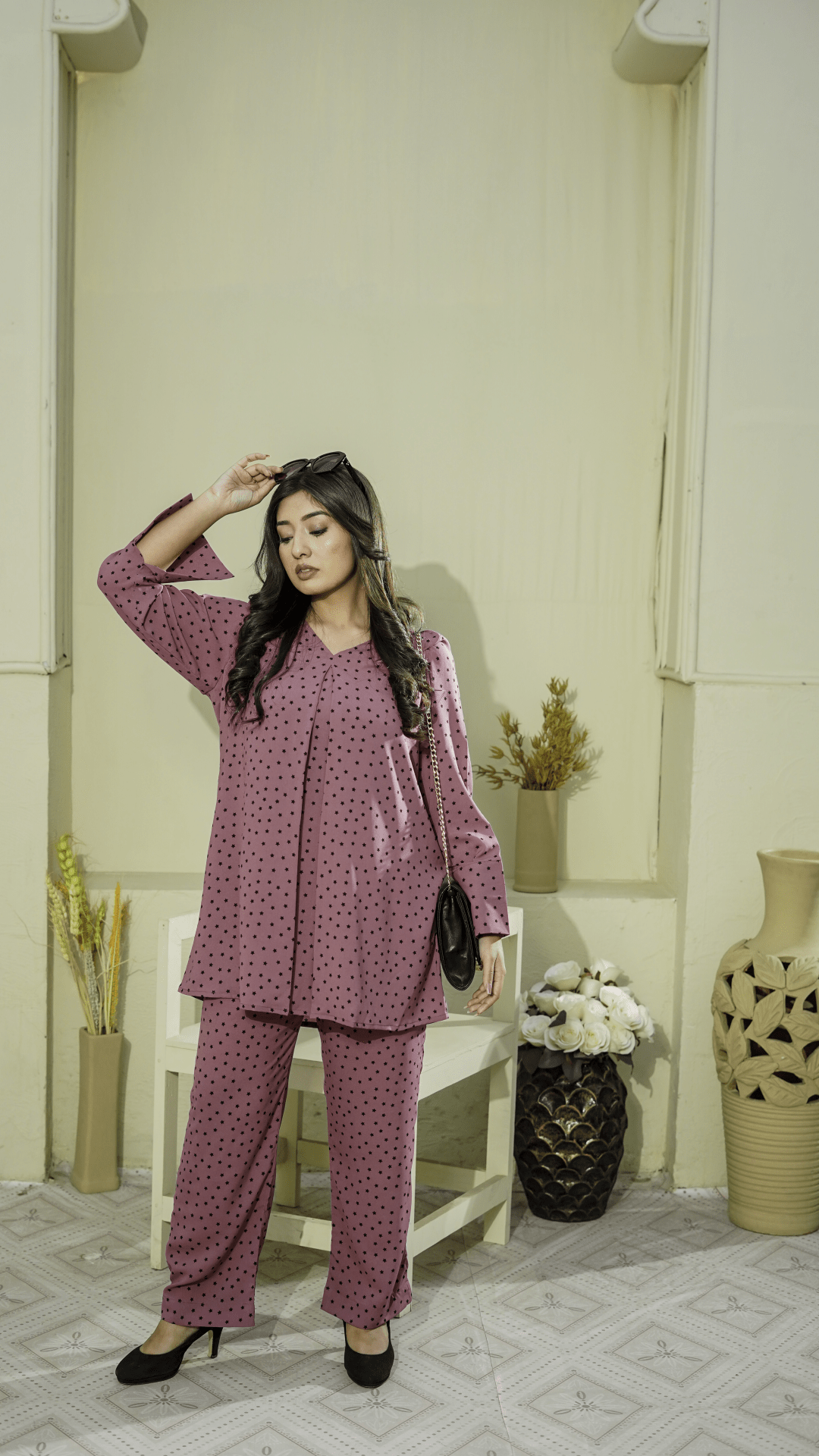 Refresh your wardrobe with this trendy starry blue co-ord set, perfect for adding a touch of elegance to your casual style. The top features a relaxed fit with long sleeves and a sleek V-neckline, adorned with a playful star print in shades of blue, pink, and white. The matching wide-leg trousers complete the look, offering both comfort and a modern silhouette. Ideal for weekend outings, relaxed gatherings this set is designed to keep you effortlessly stylish.