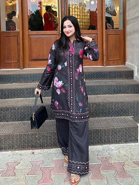 The deep dark base paired with vibrant floral patterns creates a look that is both elegant and full of life.
